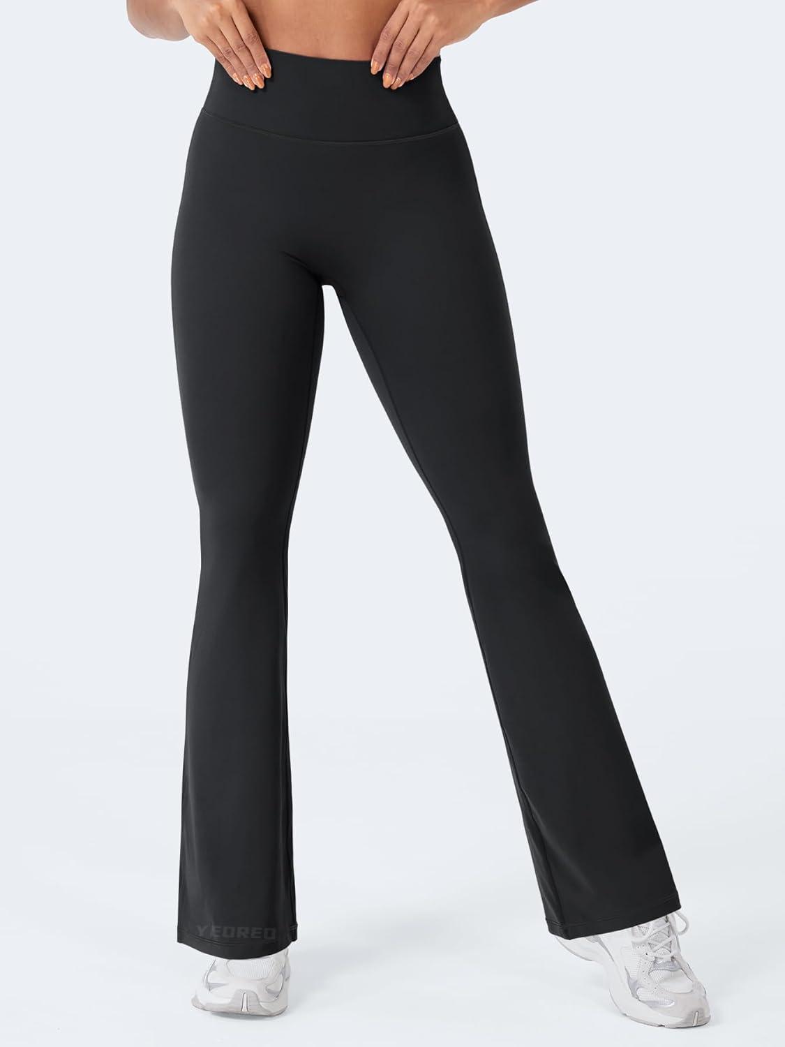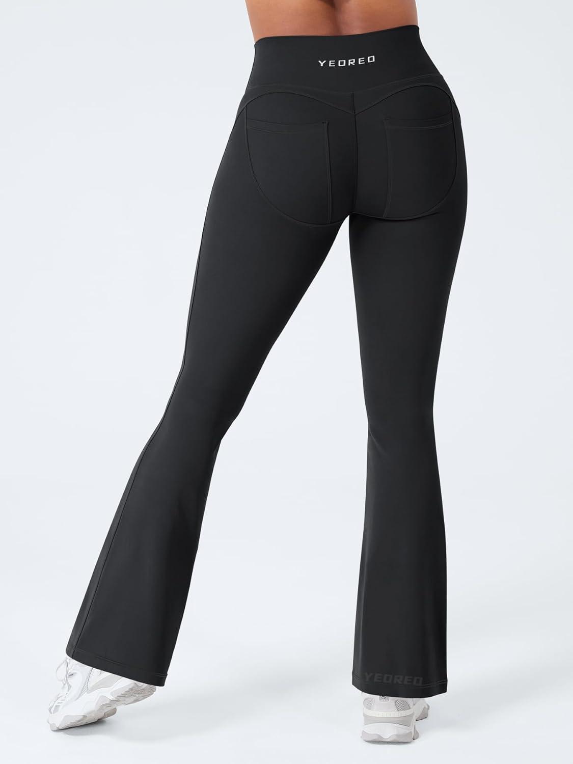 YEOREO CoreFlex Mini Flare Workout Leggings with Pockets for Women Butt Lifting High Waisted Hidden Scrunch Gym Denim Pants(Pure Black)