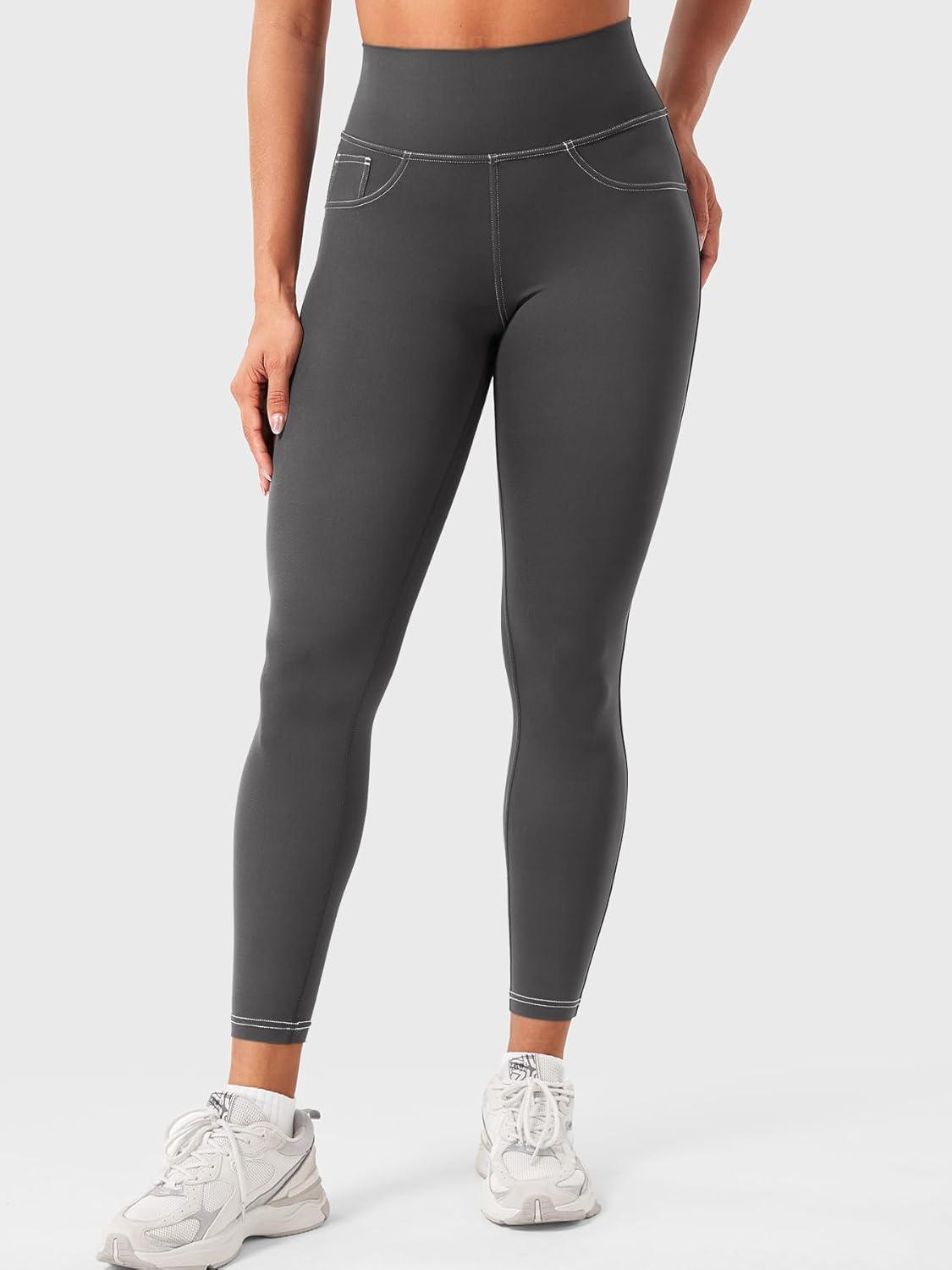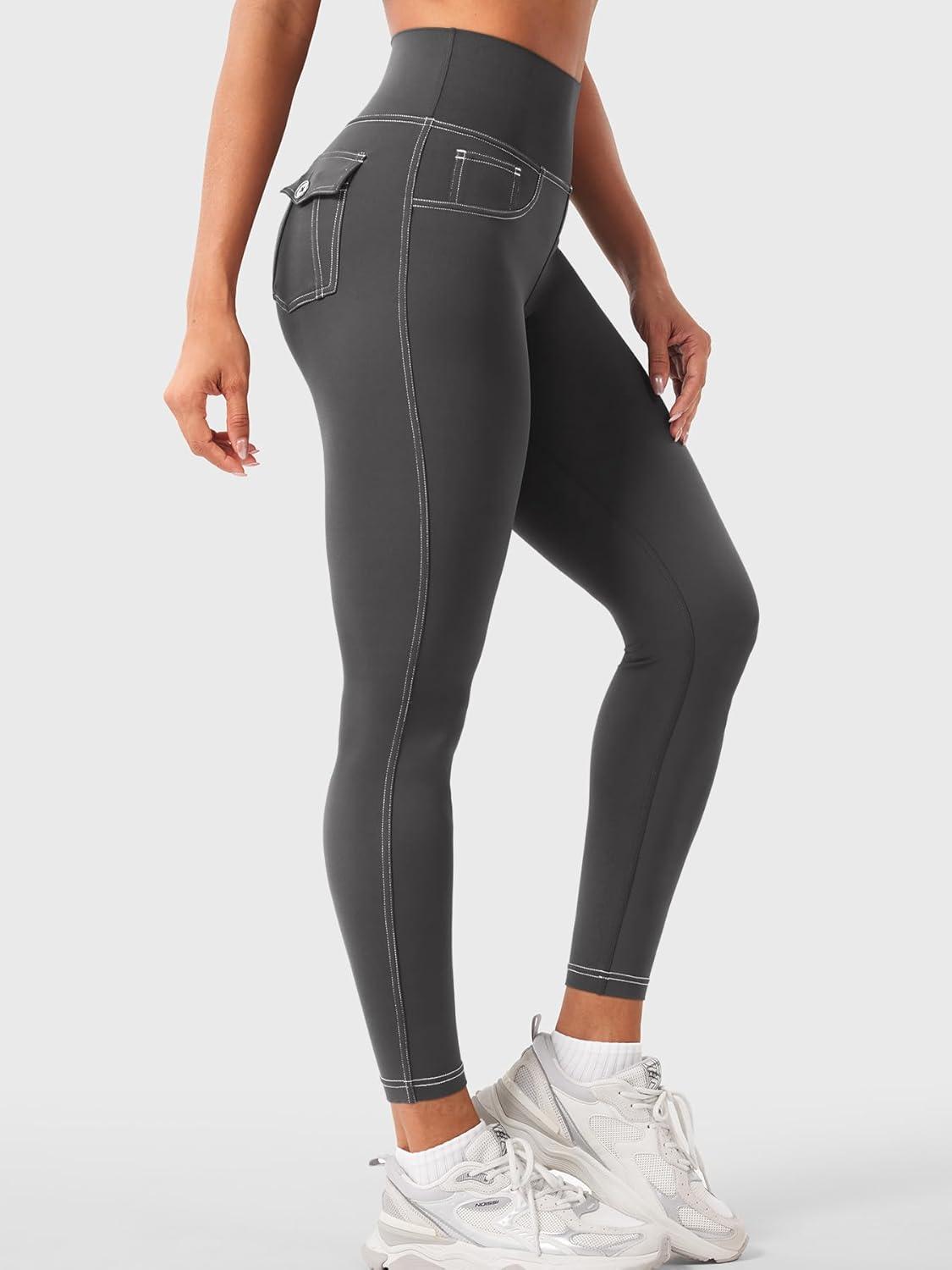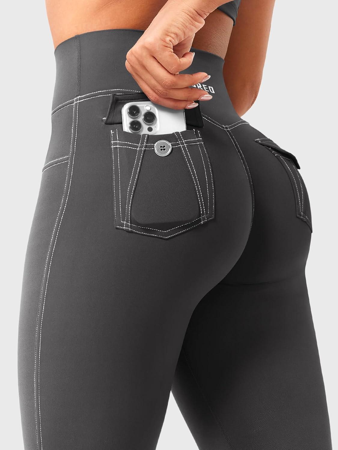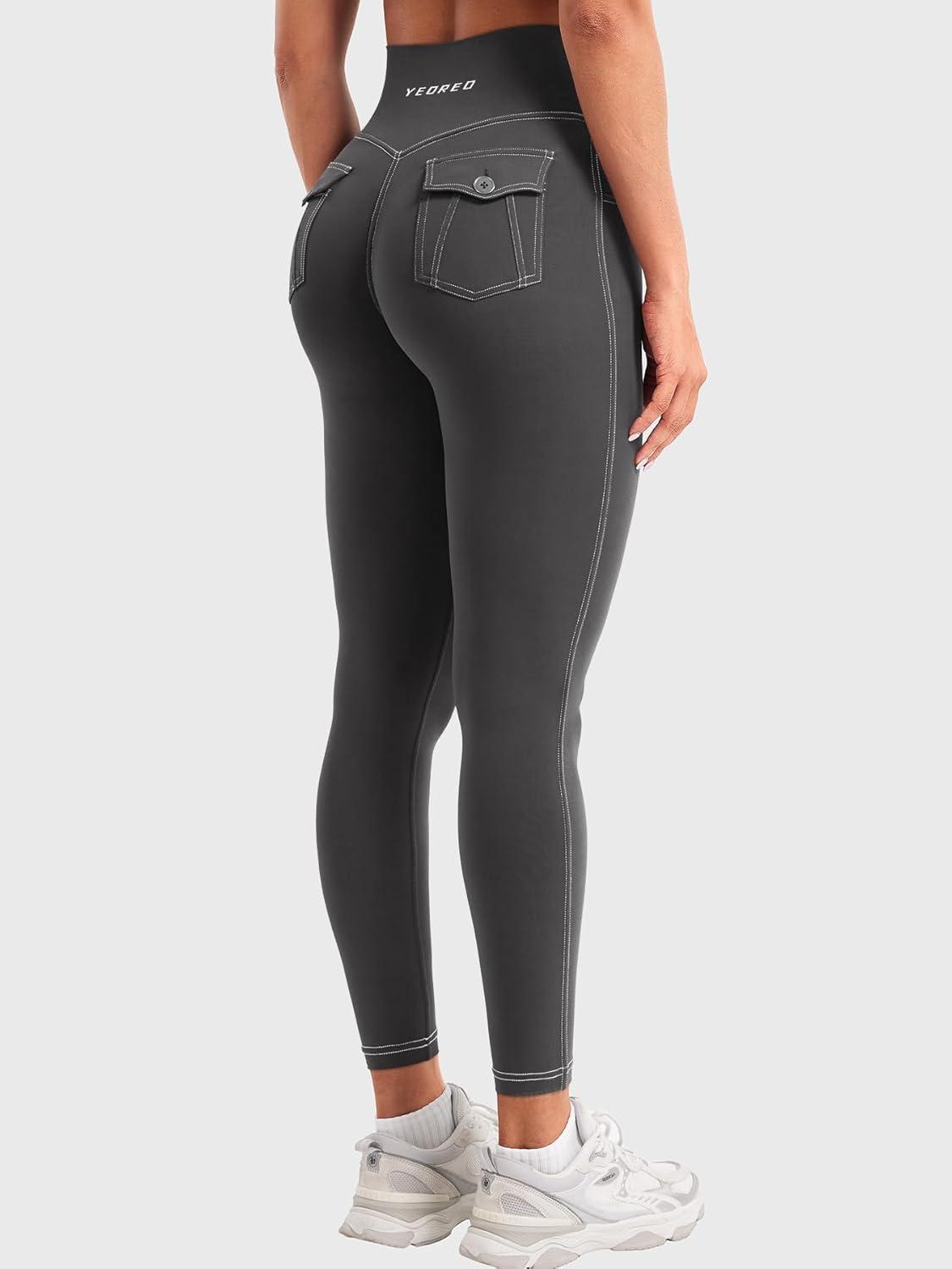 YEOREO CoreFlex Women Workout Leggings with Pockets Scrunch Butt Lifting Gym Cargo Denim-Look Yoga Pants(Dark Gray)