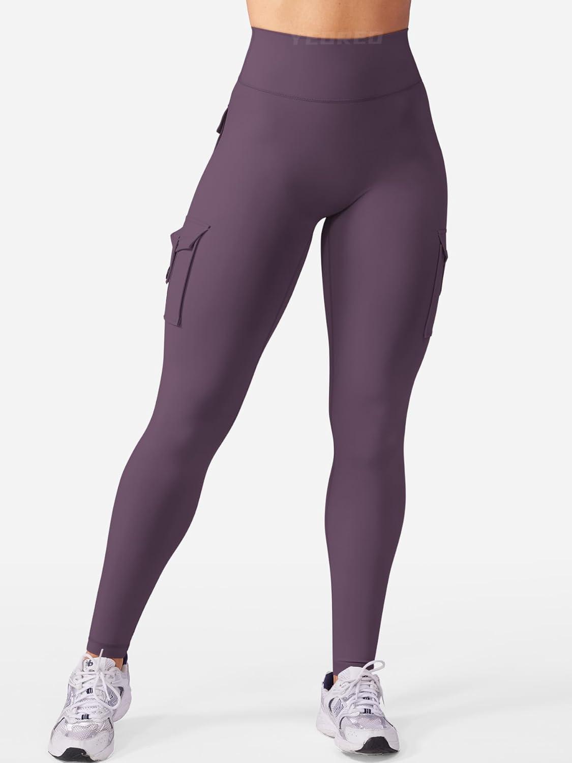 YEOREO CoreFlex Workout Cargo Leggings with Pockets for Women Hidden Scrunch Butt Lifting Leggings Gym Yoga Pants(Black Berry Purple Blue)