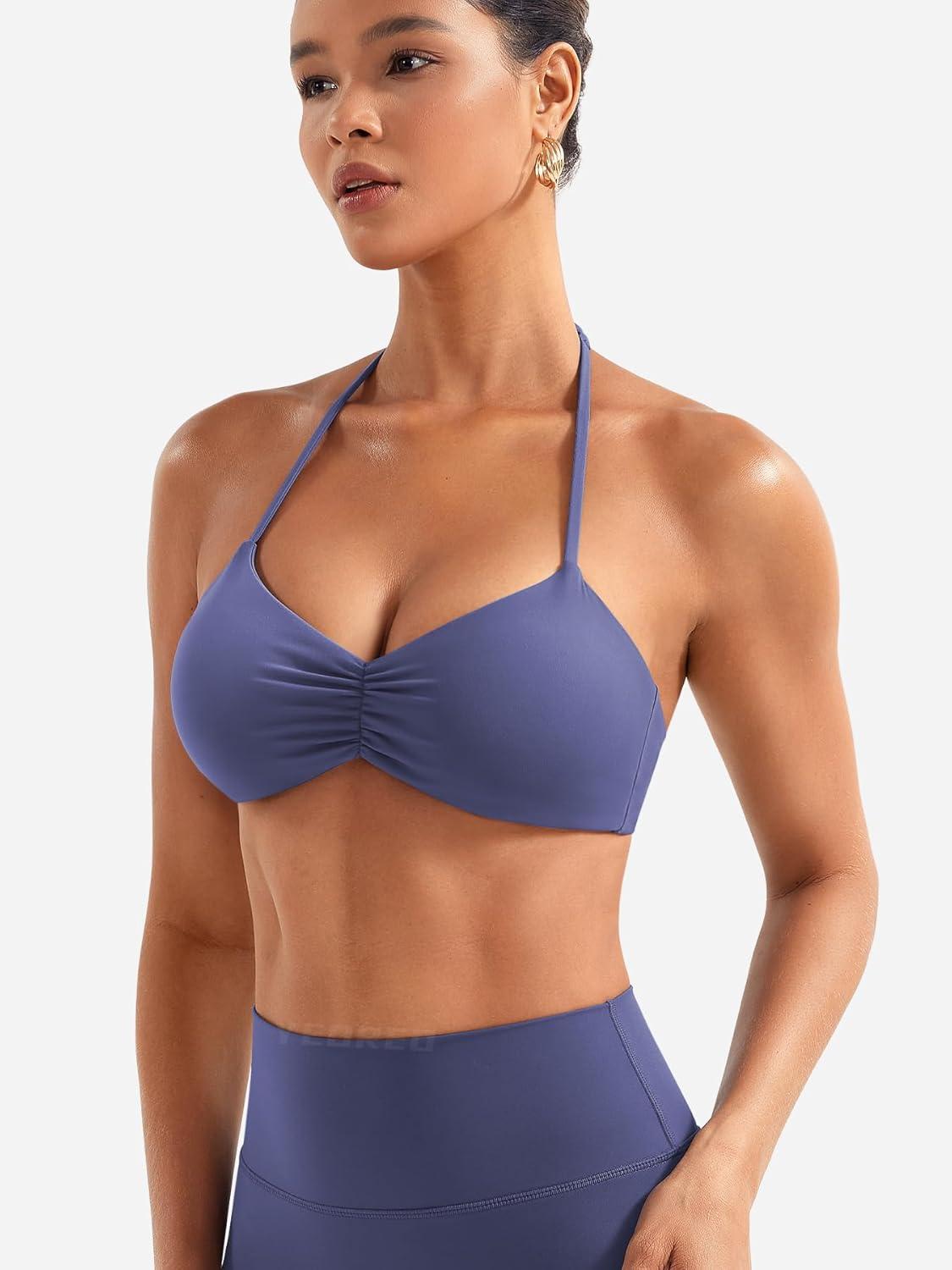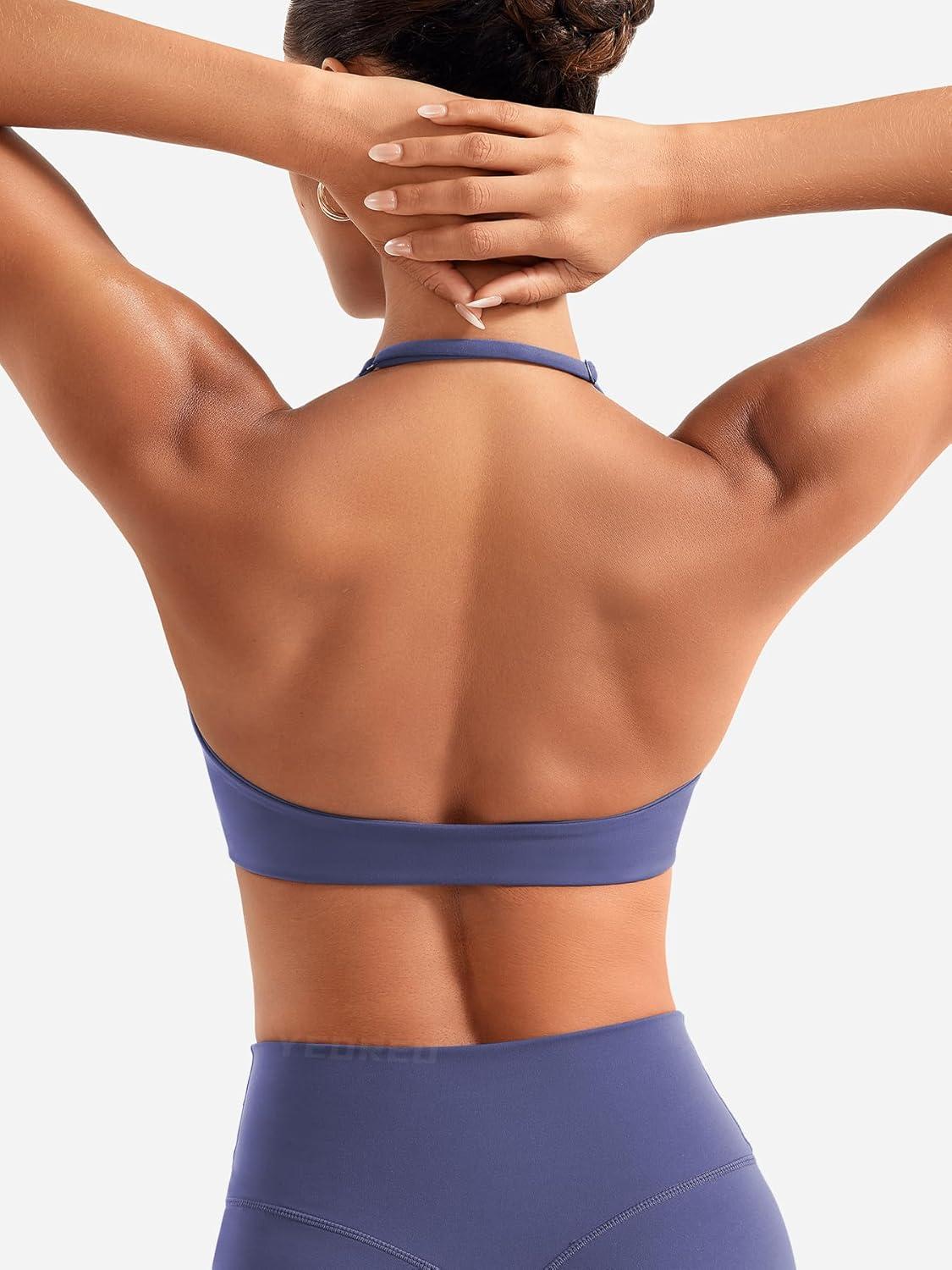 YEOREO Halter Sports Bras for Women Adjustable Strappy Open Back Impact Removable Pads Deep V Bra Workout Gym Yoga Crop Top(Light Purple)