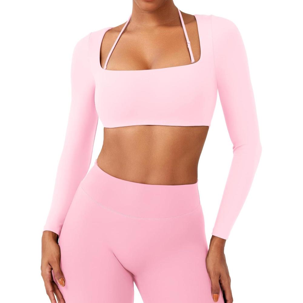 Be the first to review “YEOREO Long Sleeve Crop Tops for Women Square Neck Workout Yoga Cropped T Shirt Top Padded Halter Neck with Detachable(Cherry Blossom)” Cancel reply
