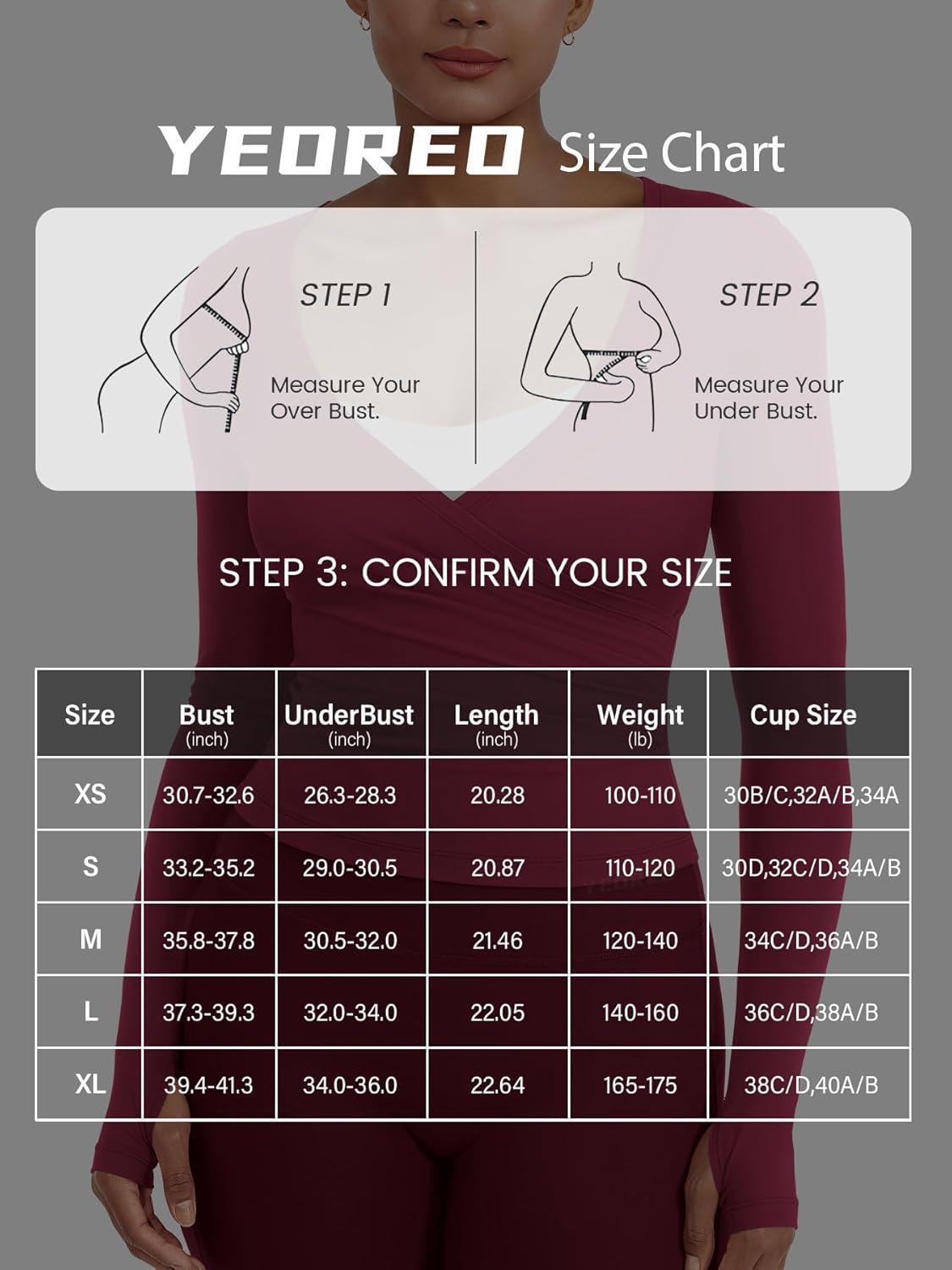 YEOREO Minniy Women Wrap Long Sleeve with Thumb Loops V Neck Basic Workout Shirts for Yoga Pilates Going Out Shrug Blouse(Chocolates)
