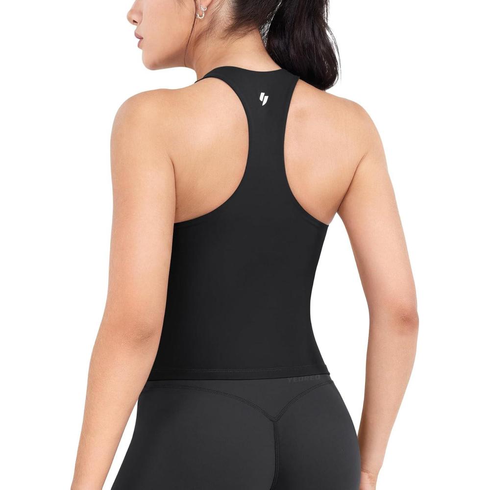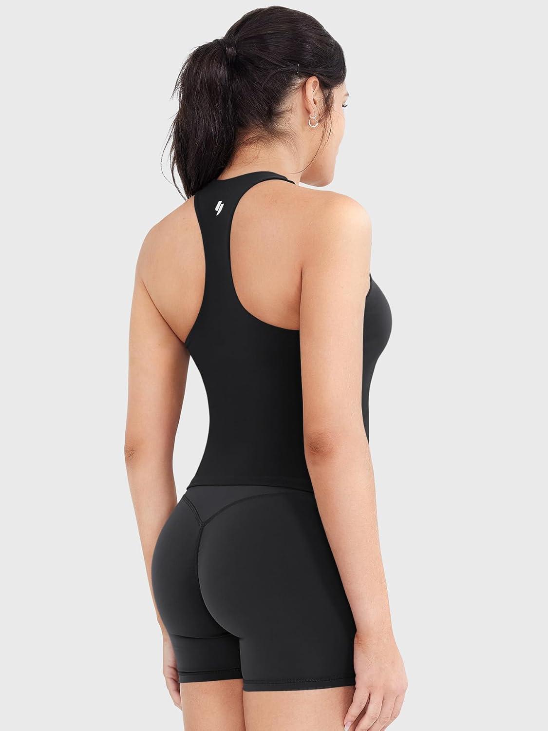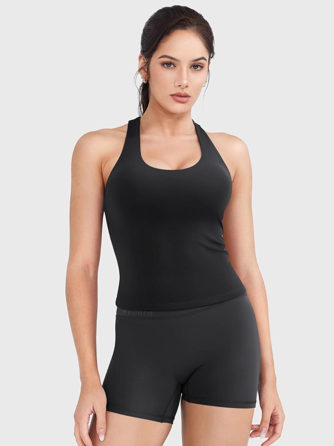 YEOREO Racerback Workout Tank Tops for Women Ackii U Neck Padded Camisole Tops Sleeveless Gym Yoga Shirts(Black)