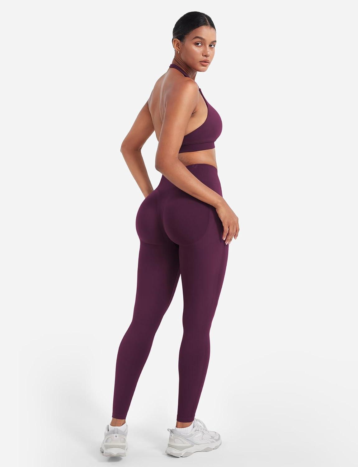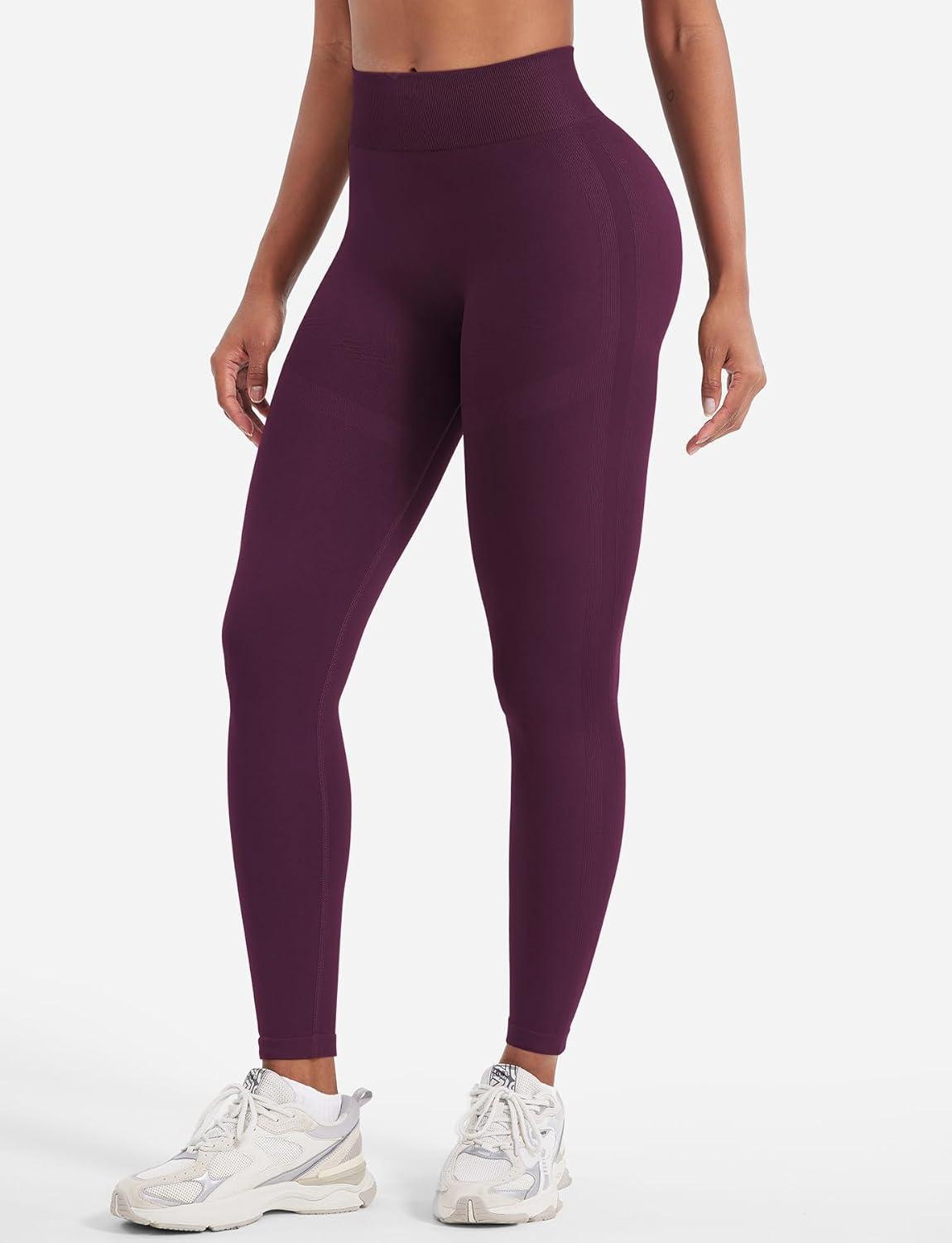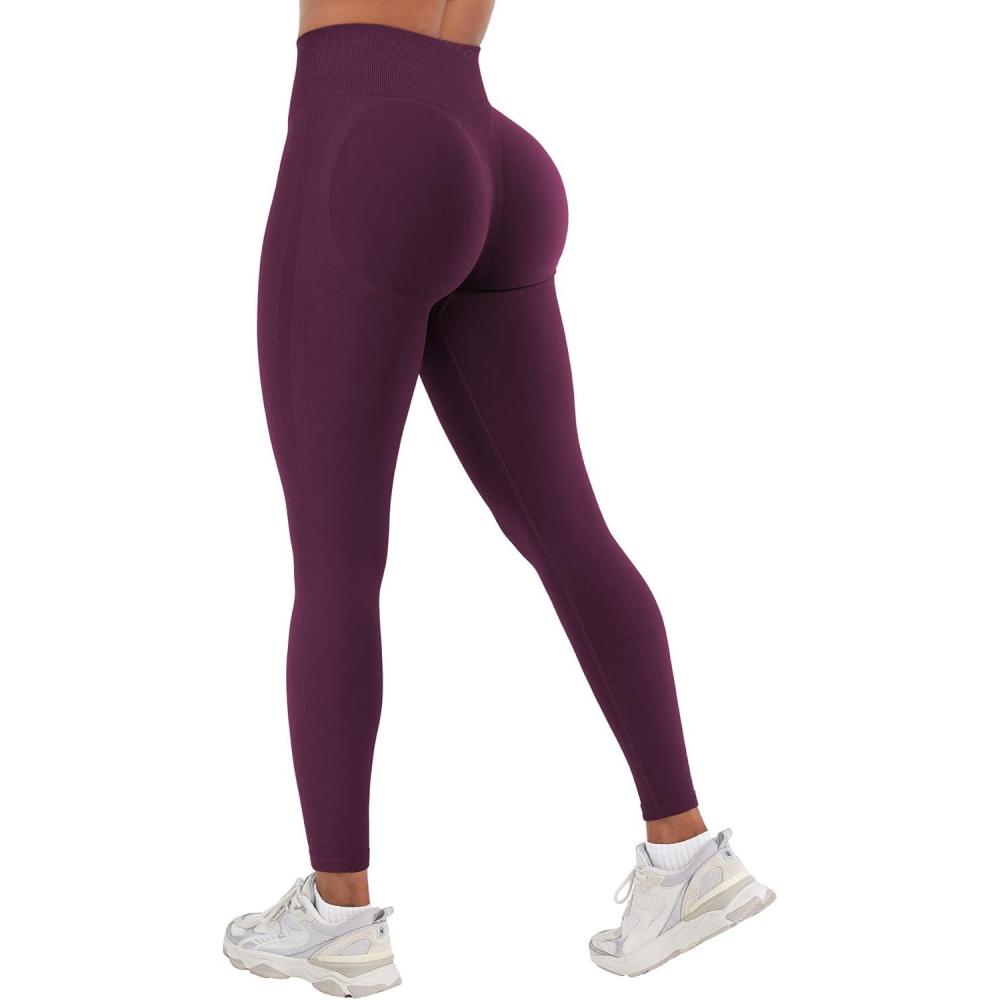 YEOREO Seamless Workout Leggings for Women Butt Lifting Hidden Scrunch Leggings High Waisted Gym Yoga Lilliean Impact Pants(Black Cherry)