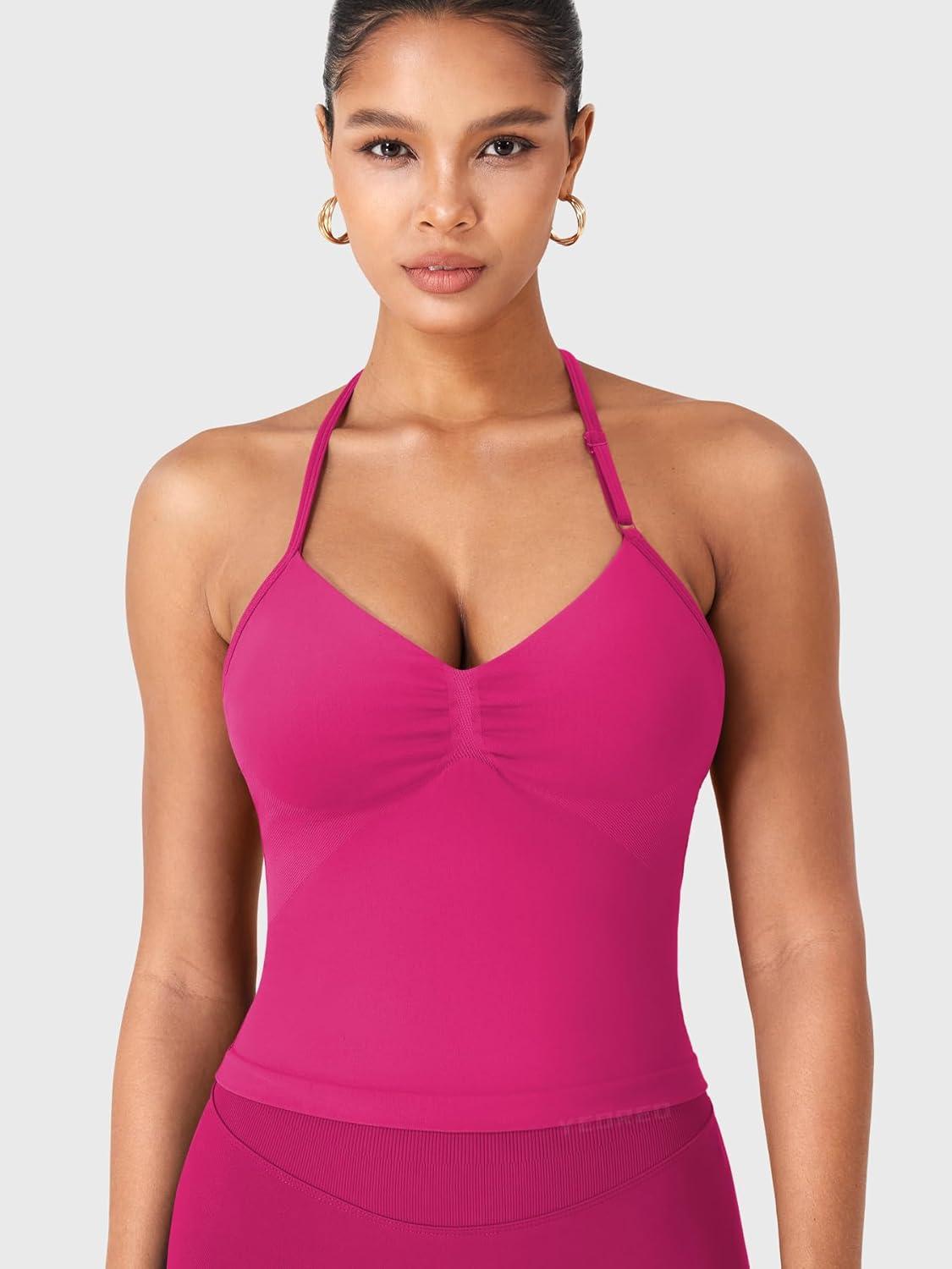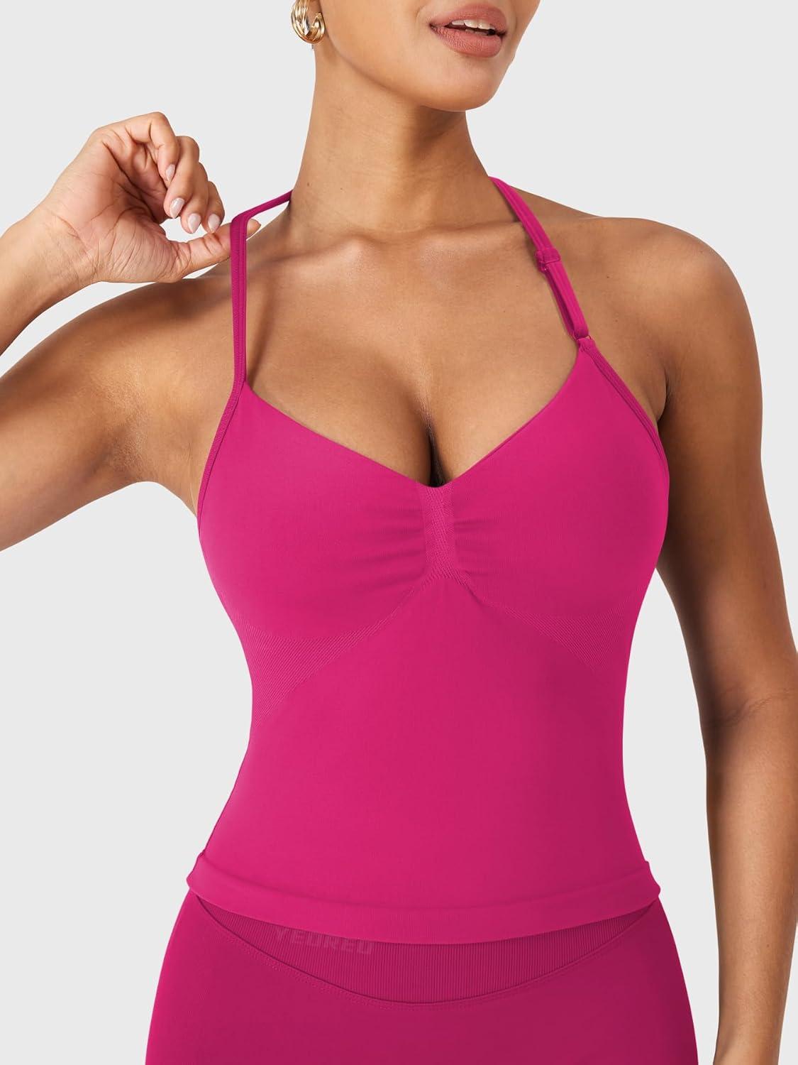 imageYEOREO SoftHue Impact Longline Strappy Top Womens Halter Workout Tank Tops Backless Gym Longline with Adjustable StrapRose