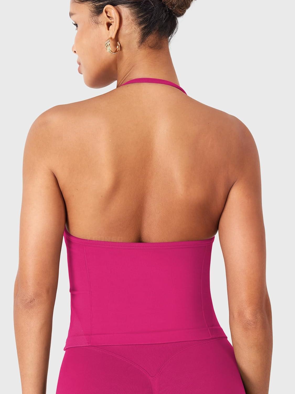YEOREO SoftHue Impact Longline Strappy Top Women's Halter Workout Tank Tops Backless Gym Longline with Adjustable Strap(Rose)