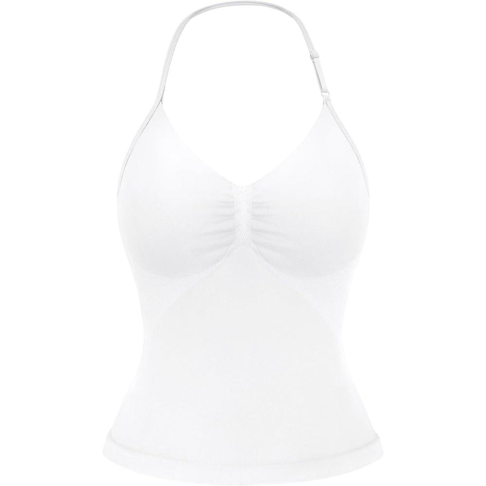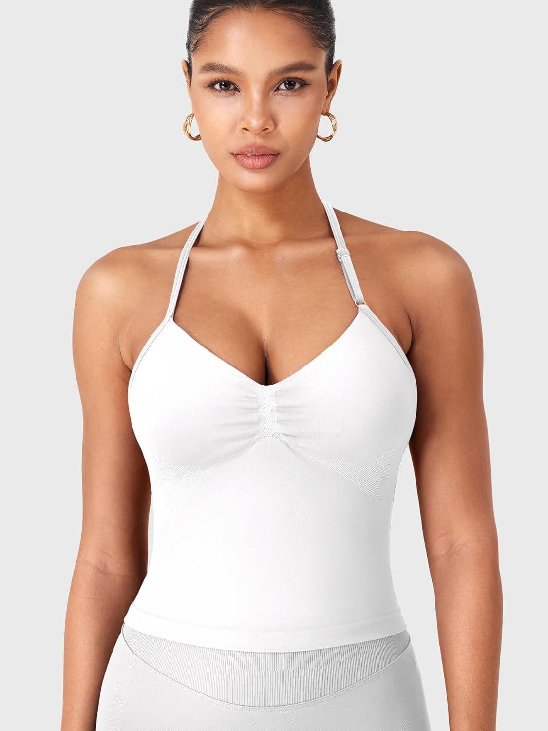 imageYEOREO SoftHue Impact Longline Strappy Top Womens Halter Workout Tank Tops Backless Gym Longline with Adjustable StrapWhite