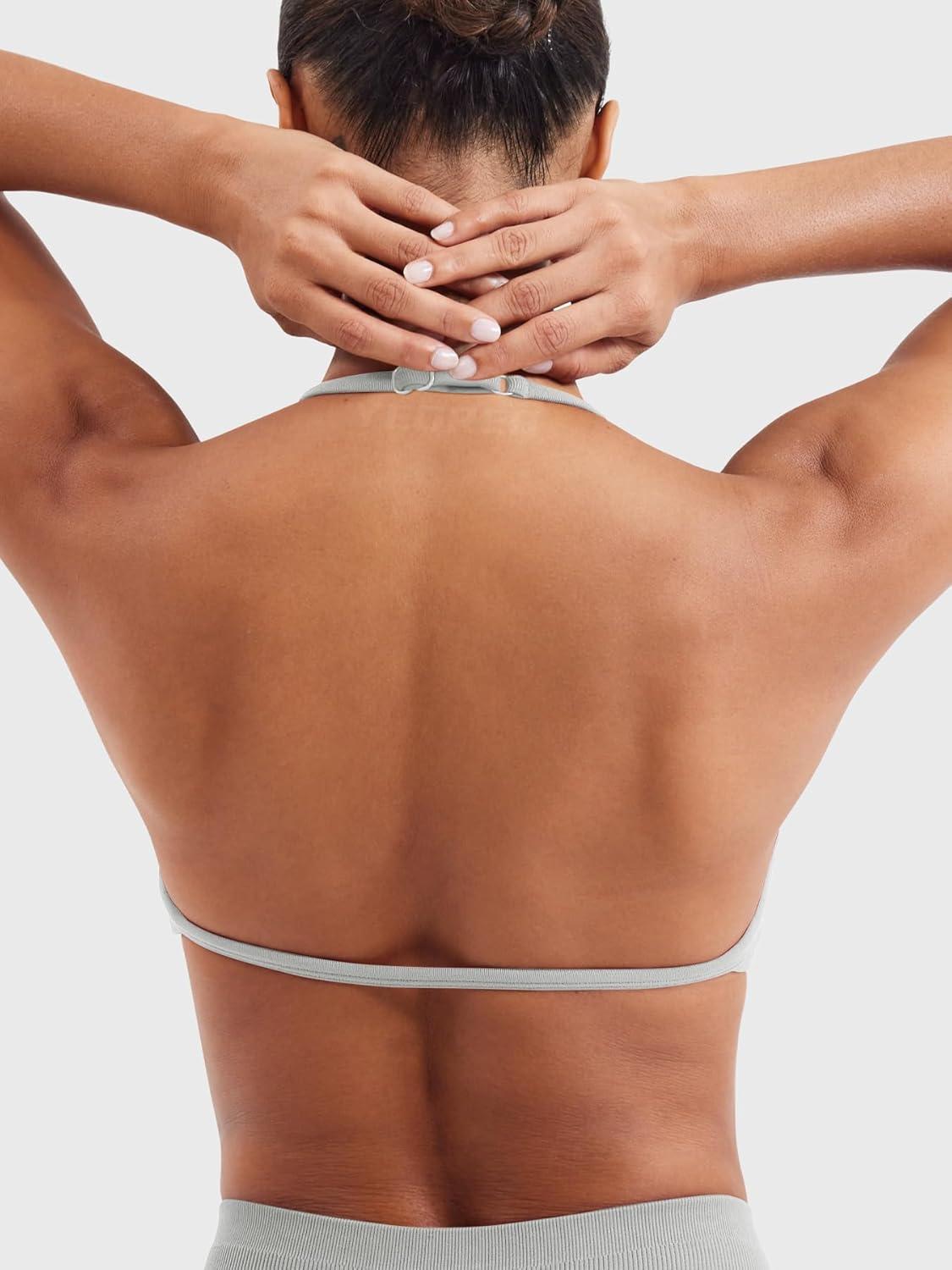 imageYEOREO SoftHue Impact Strappy Halter Bra for Sports Intensify Women Workout Backless Padded Gym Yoga BraBeige