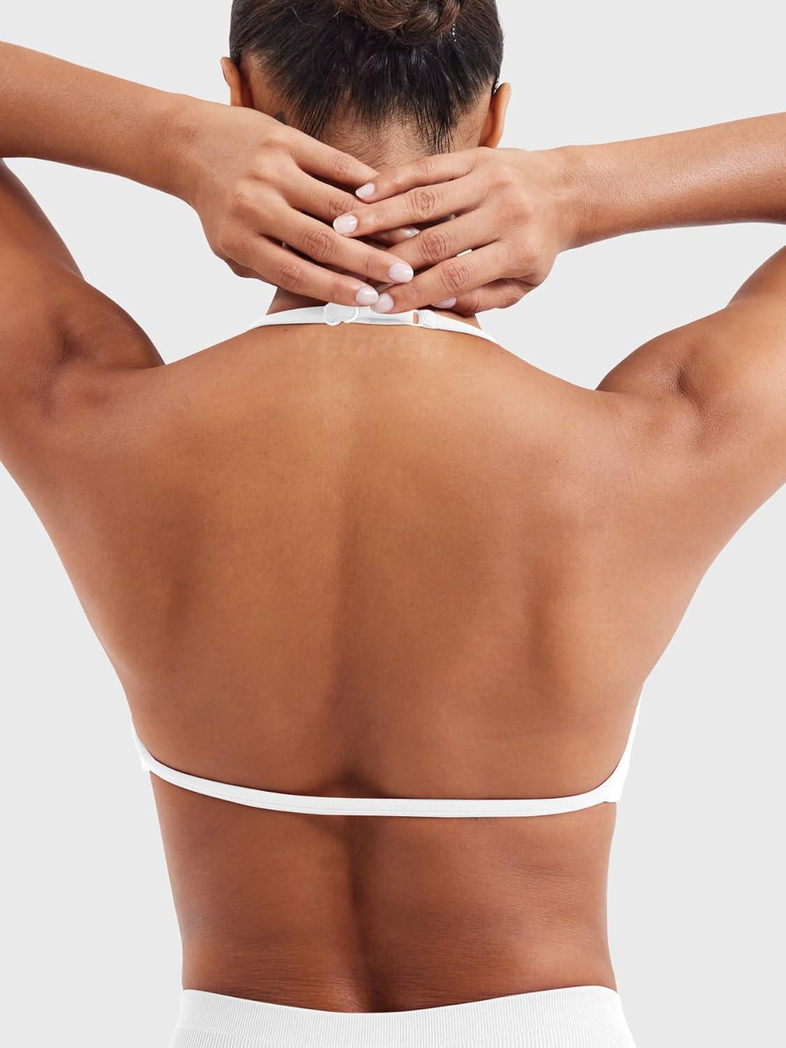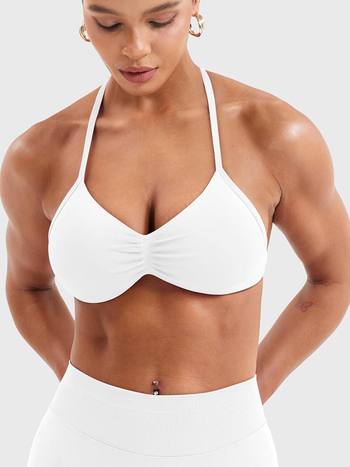 YEOREO SoftHue Impact Strappy Halter Bra for Sports Intensify Women Workout Backless Padded Gym Yoga Bra(White)