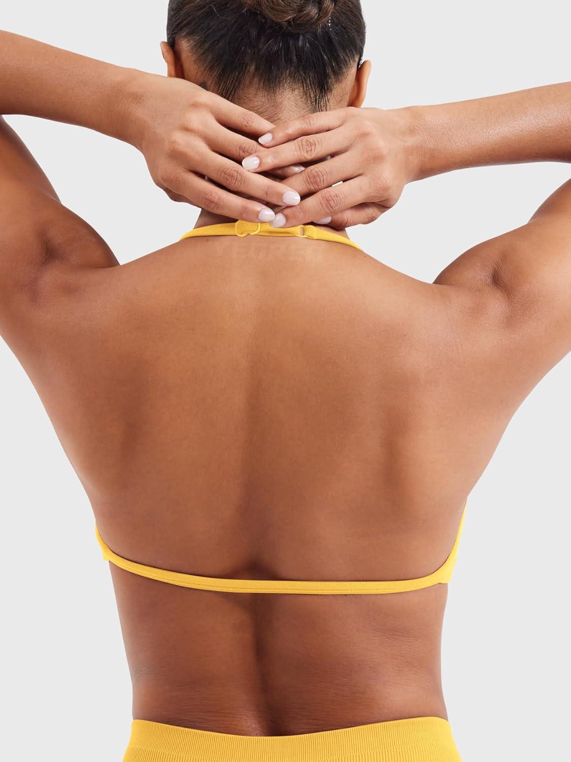 imageYEOREO SoftHue Impact Strappy Halter Bra for Sports Intensify Women Workout Backless Padded Gym Yoga BraYellow