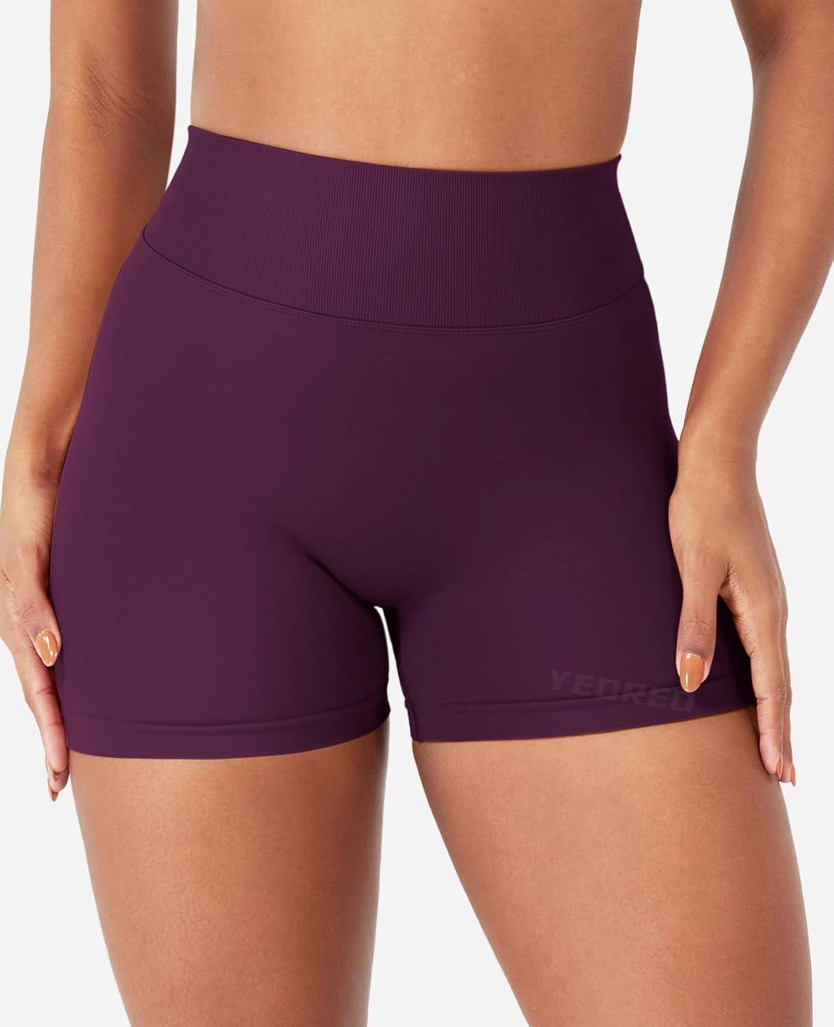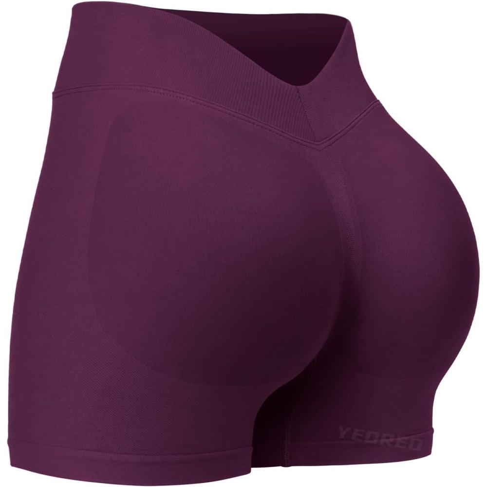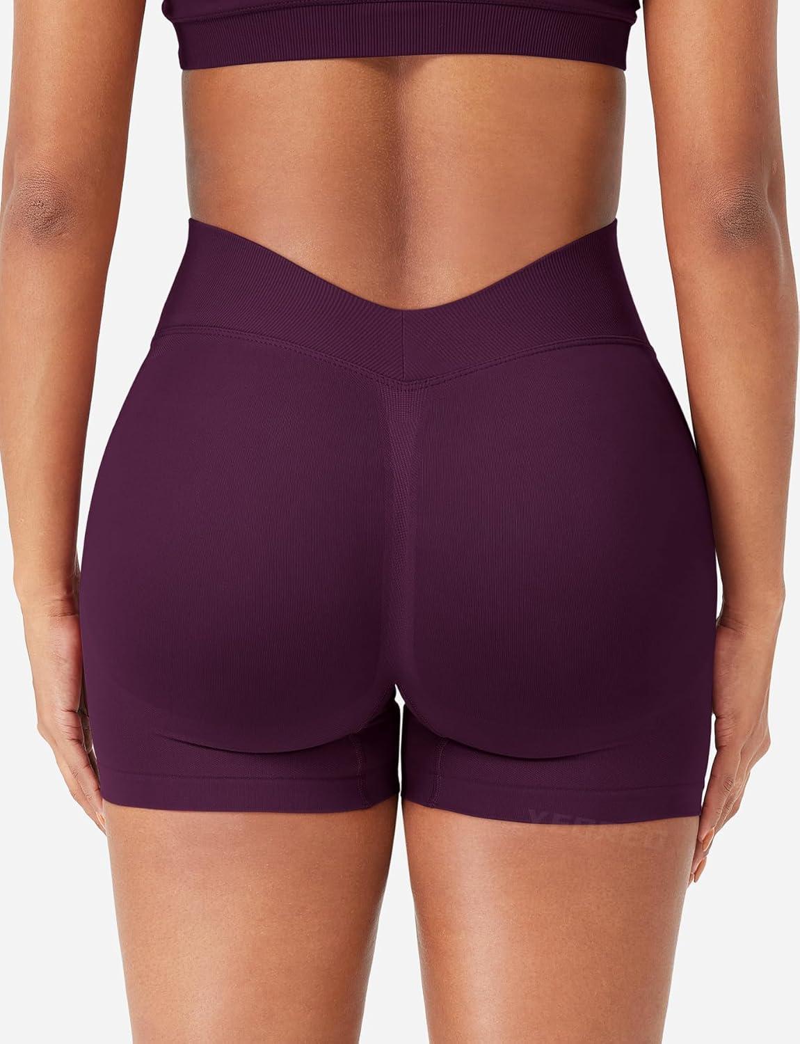 YEOREO SoftHue Workout Shorts for Women 3.6″ Gym Impact Hidden Scrunch V Back Biker Shorts High Waisted Tummy Control Yoga(Black Cherry)