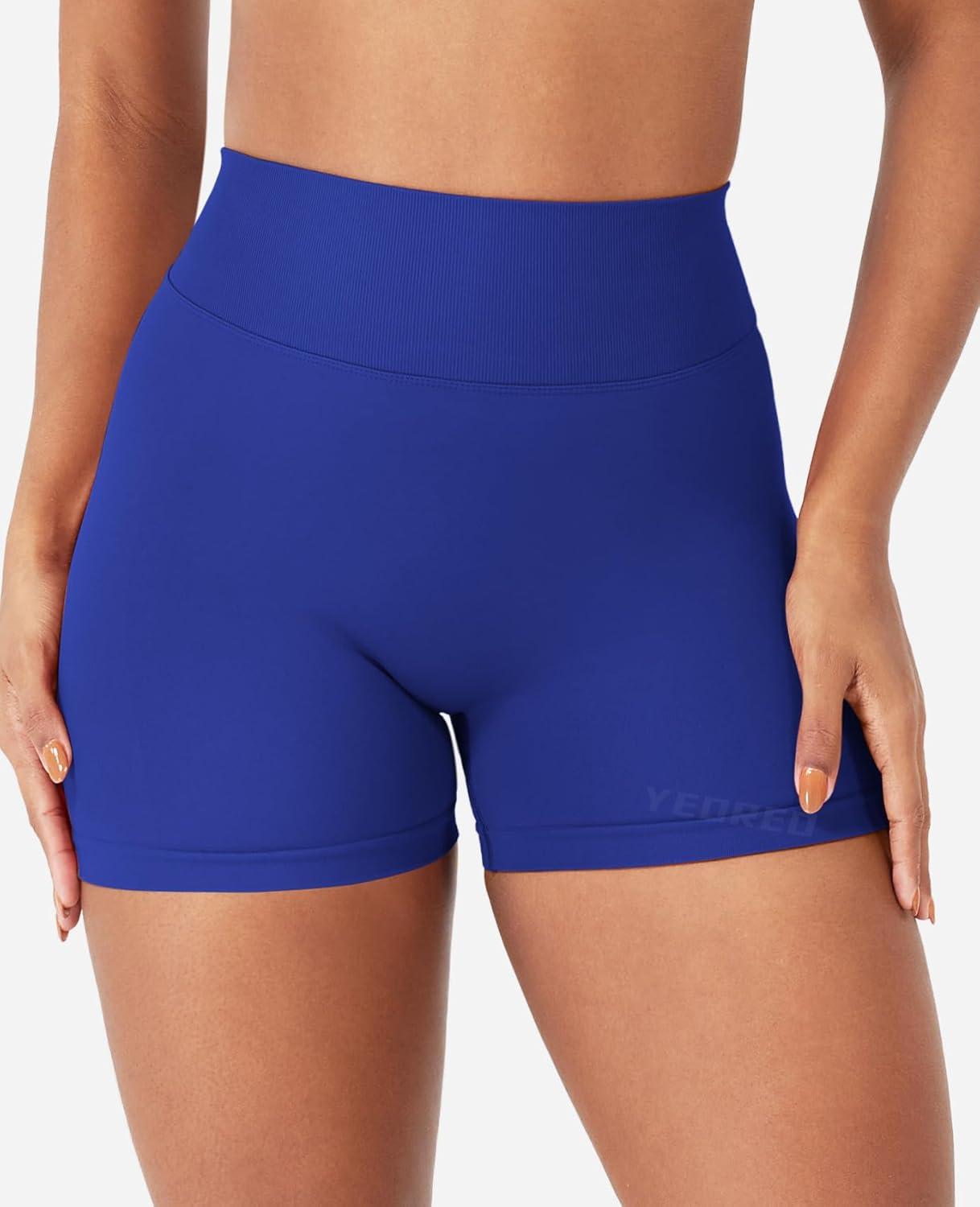 YEOREO SoftHue Workout Shorts for Women 3.6" Gym Impact Hidden Scrunch V Back Biker Shorts High Waisted Tummy Control Yoga(Deep Sea)