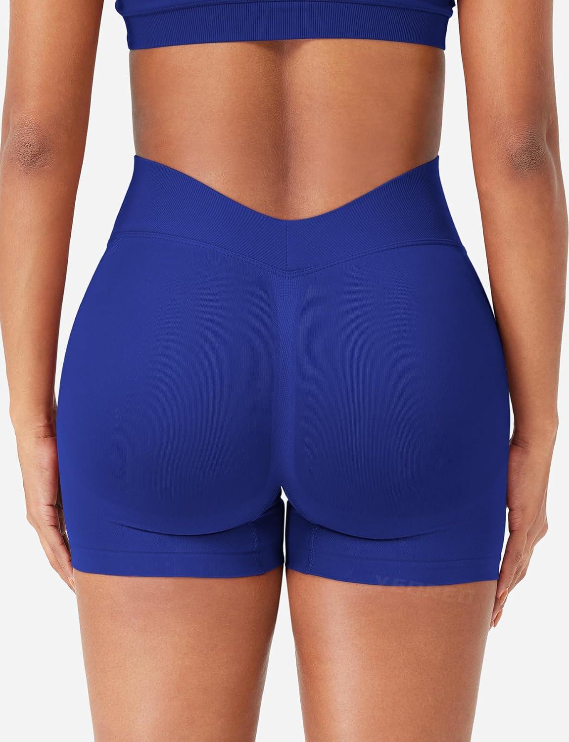 YEOREO SoftHue Workout Shorts for Women 3.6″ Gym Impact Hidden Scrunch V Back Biker Shorts High Waisted Tummy Control Yoga(Deep Sea)