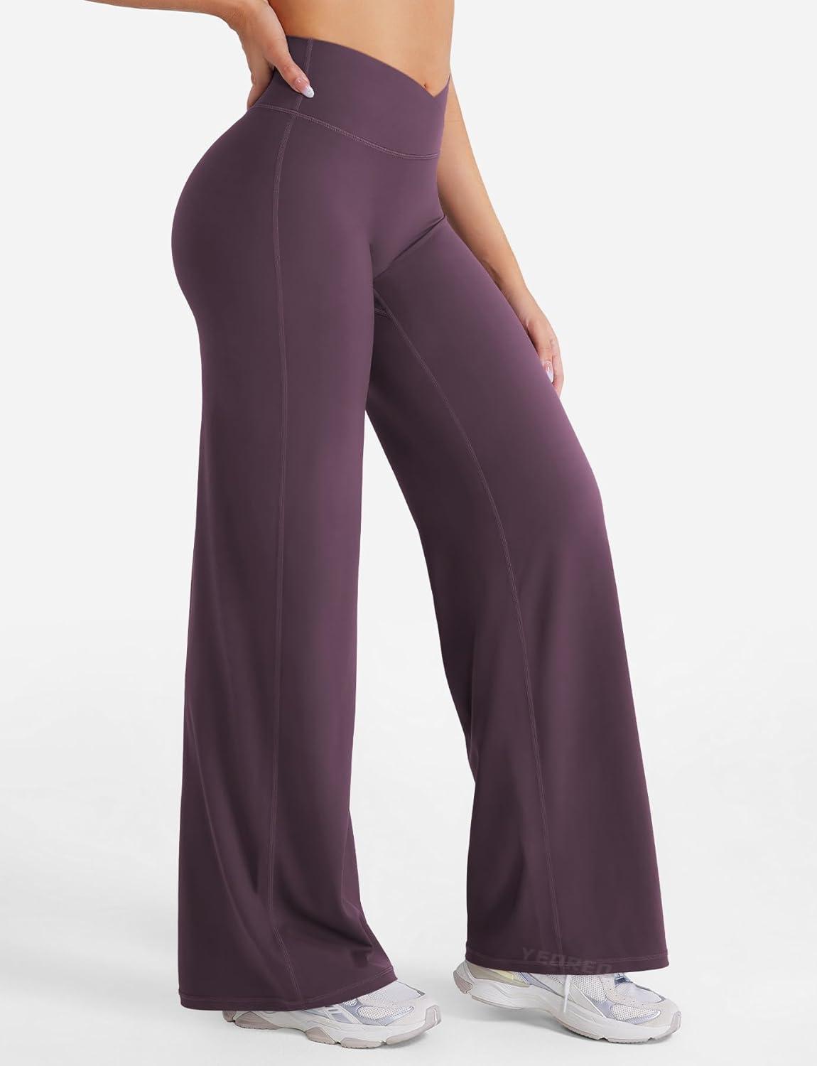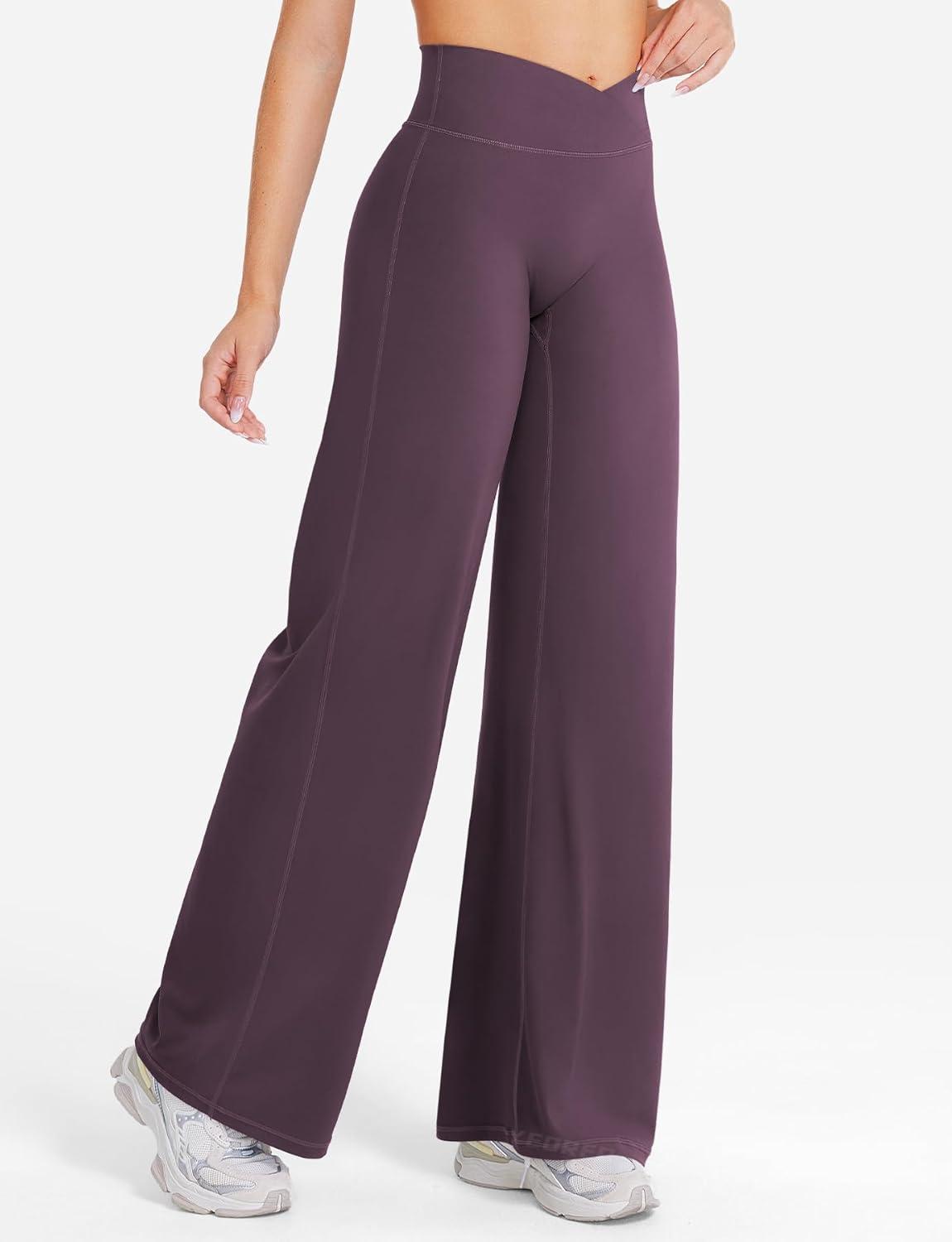 imageYEOREO Straight Leg Leggings for Women No Front Seam Workout Leggings 315quot Crossover High Waist Soft Eddiy Yoga PantsBlack Berry Purple