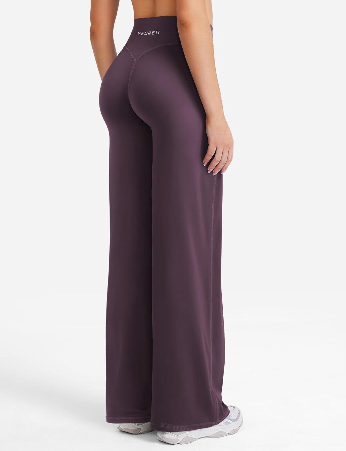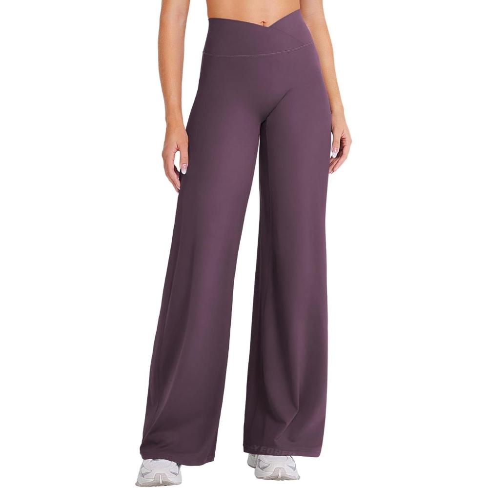 YEOREO Straight Leg Leggings for Women No Front Seam Workout Leggings 31.5" Crossover High Waist Soft Eddiy Yoga Pants(Black Berry Purple)