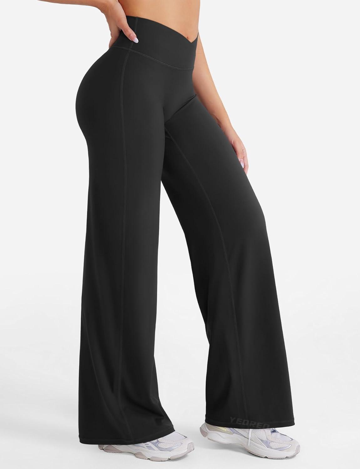 YEOREO Straight Leg Leggings for Women No Front Seam Workout Leggings 31.5" Crossover High Waist Soft Eddiy Yoga Pants(Black)