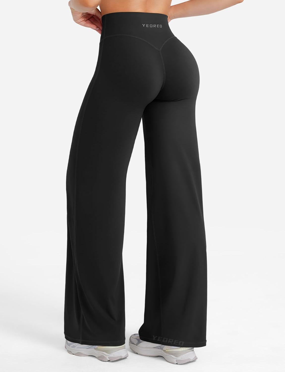 YEOREO Straight Leg Leggings for Women No Front Seam Workout Leggings 31.5″ Crossover High Waist Soft Eddiy Yoga Pants(Black)