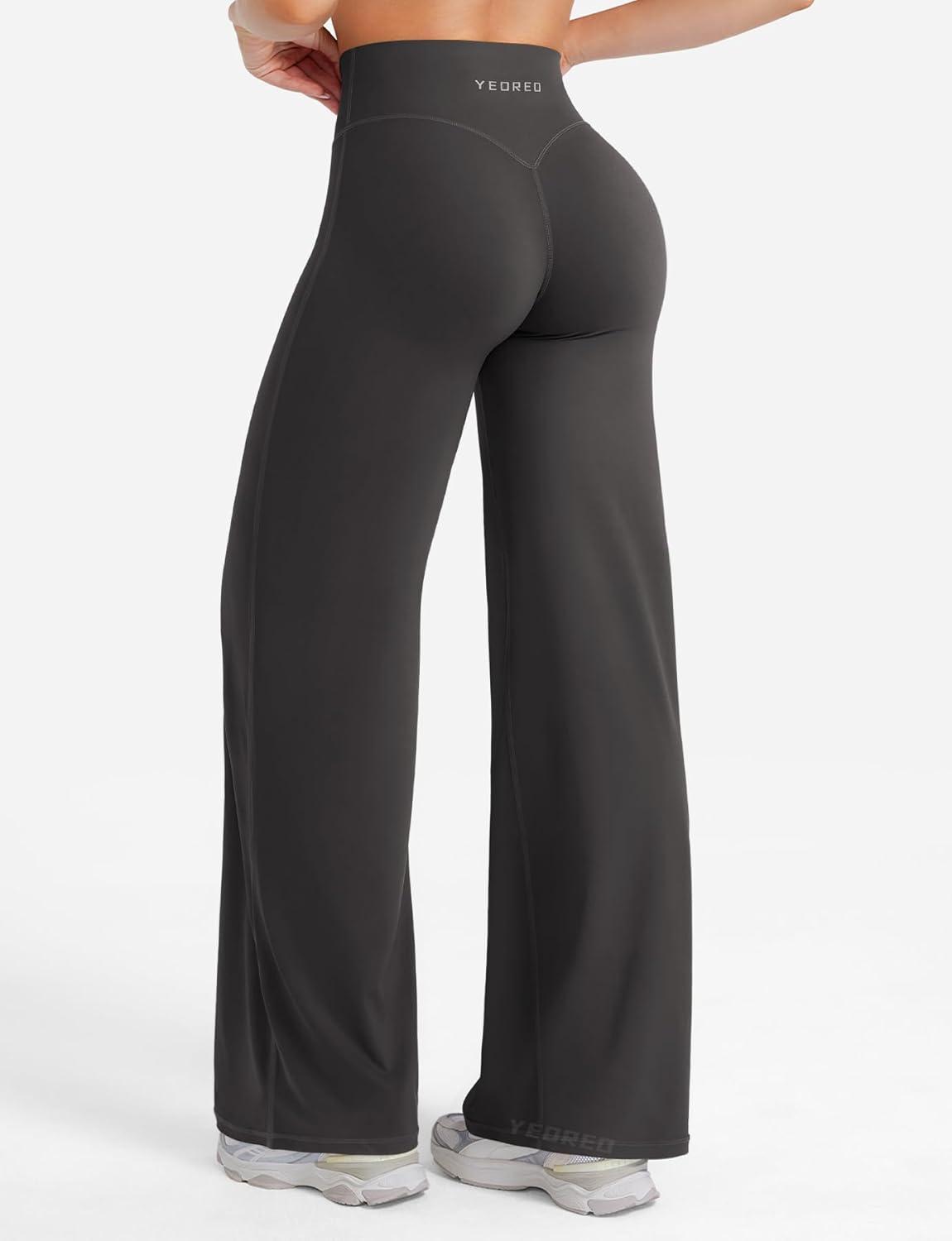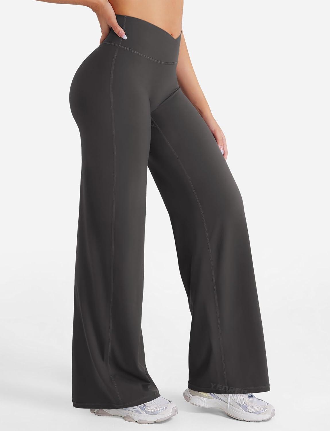 YEOREO Straight Leg Leggings for Women No Front Seam Workout Leggings 31.5″ Crossover High Waist Soft Eddiy Yoga Pants(Dark Gray)