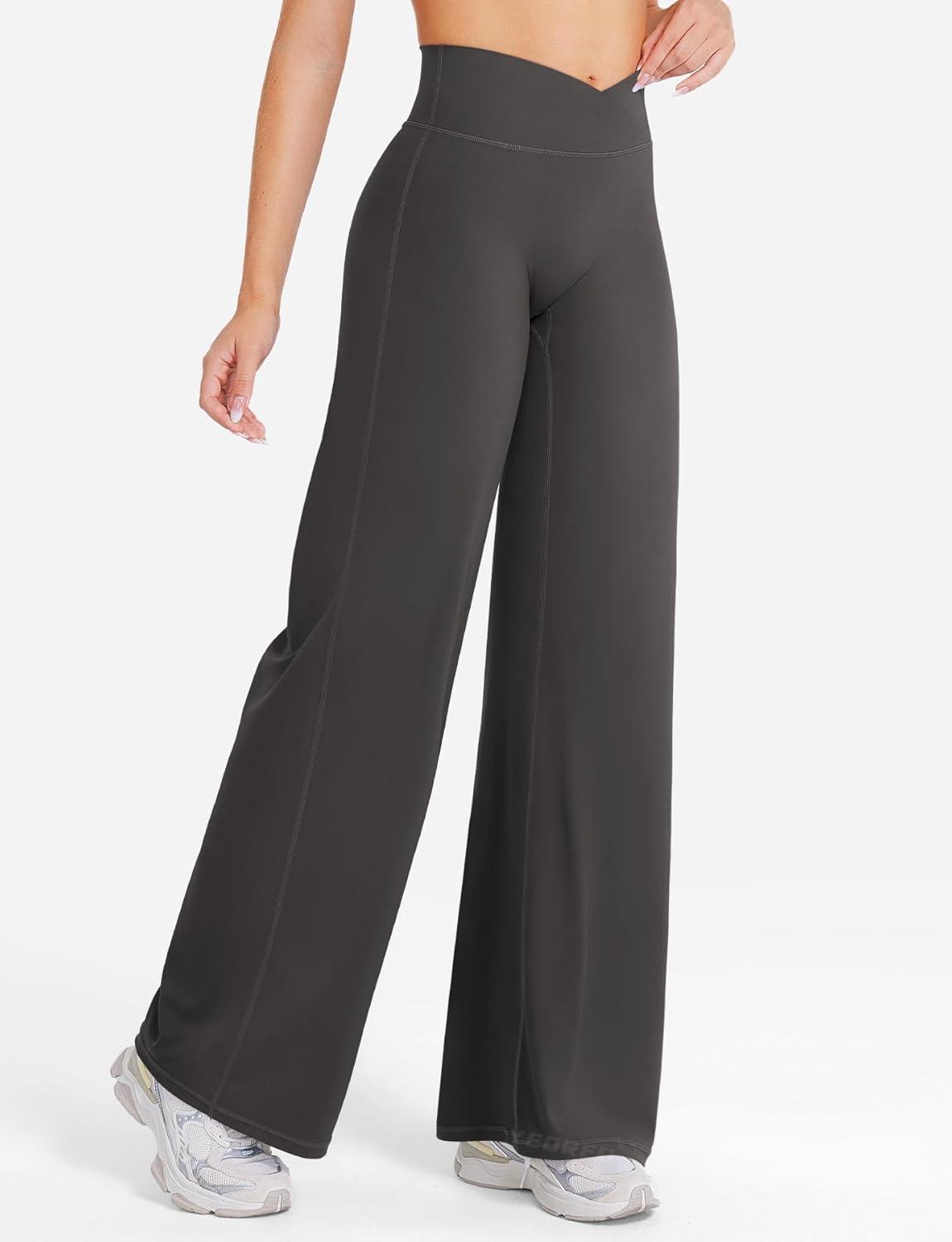 imageYEOREO Straight Leg Leggings for Women No Front Seam Workout Leggings 315quot Crossover High Waist Soft Eddiy Yoga PantsDark Gray