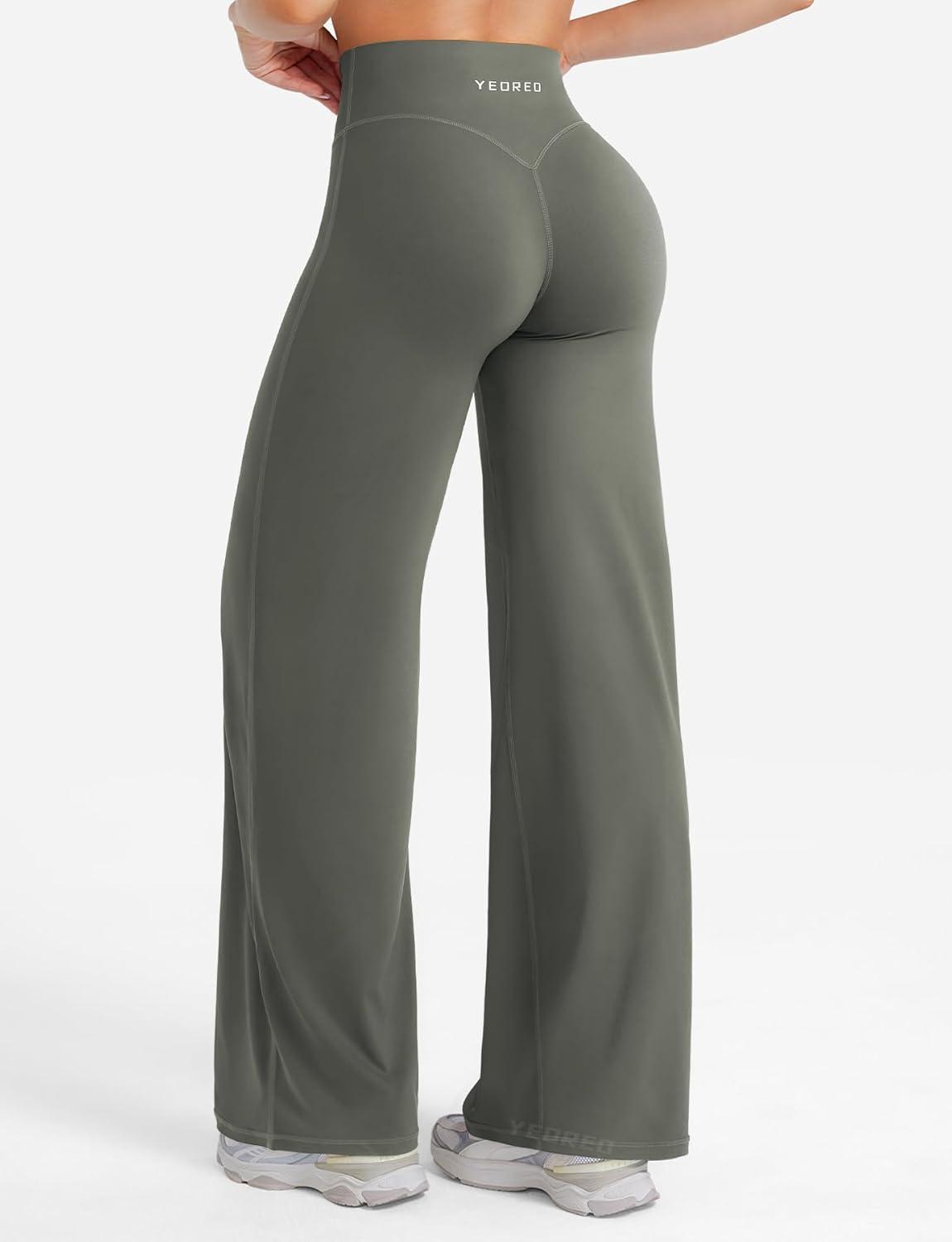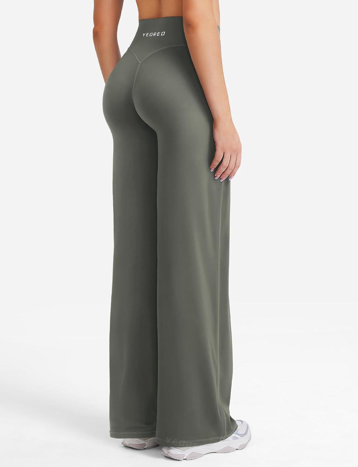YEOREO Straight Leg Leggings for Women No Front Seam Workout Leggings 31.5″ Crossover High Waist Soft Eddiy Yoga Pants(Gray Green)