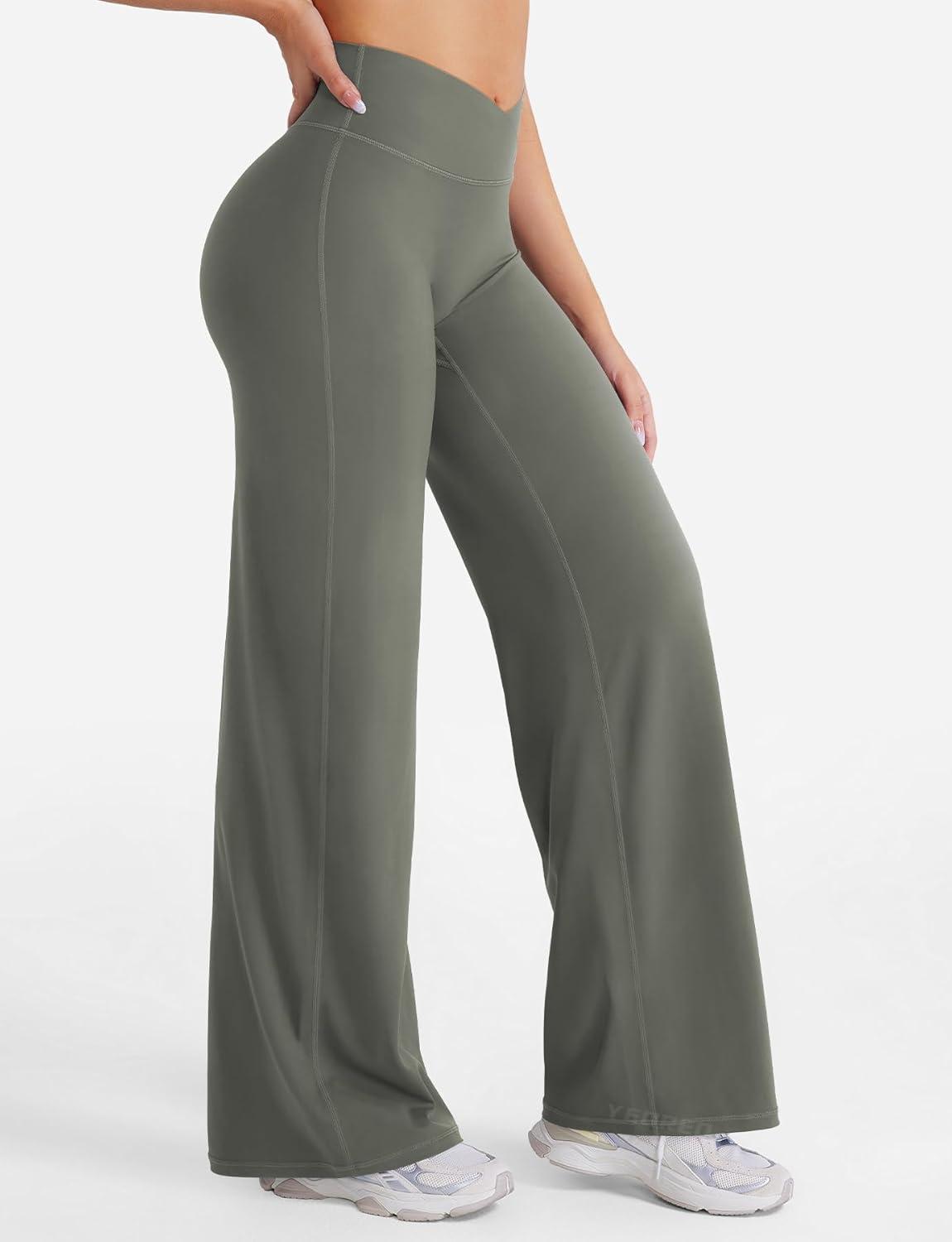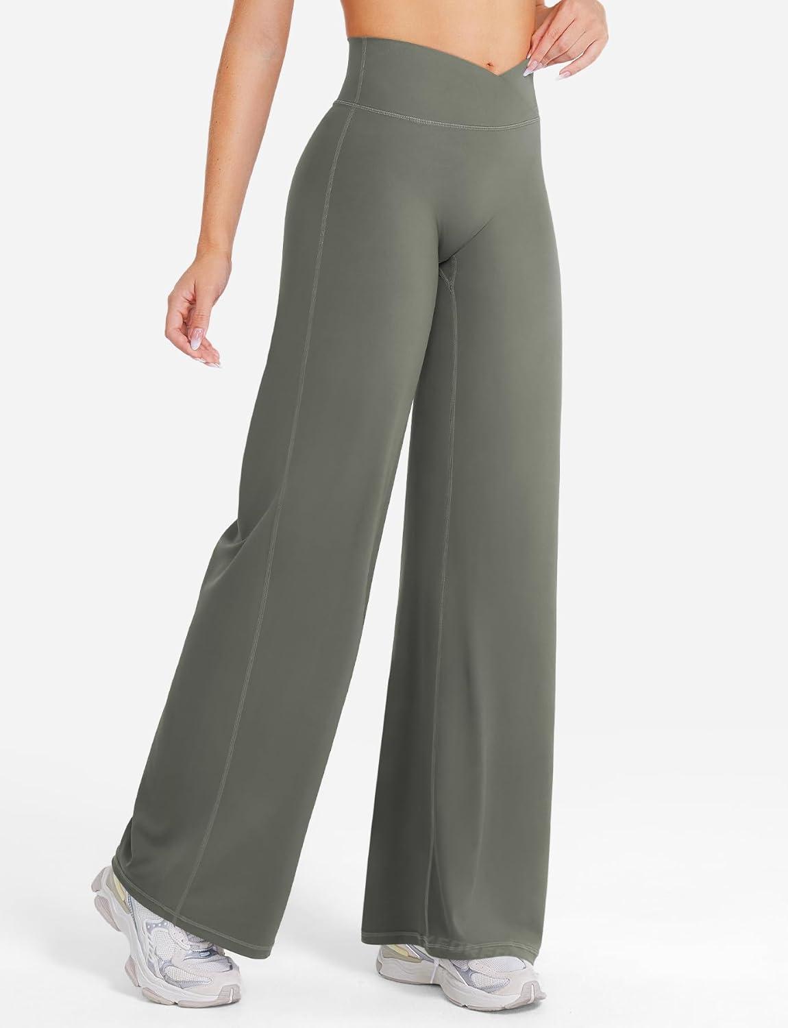 imageYEOREO Straight Leg Leggings for Women No Front Seam Workout Leggings 315quot Crossover High Waist Soft Eddiy Yoga PantsGray Green