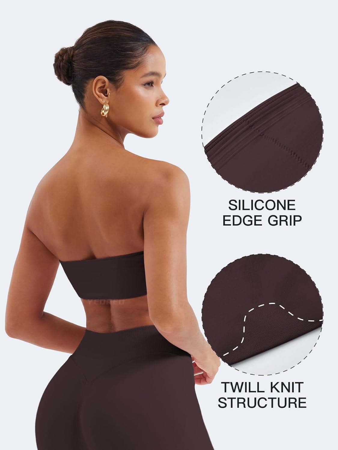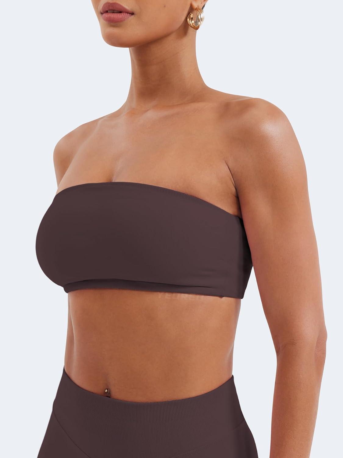 YEOREO Strapless Bandeau Sports Bra for Workout Seamless Tube Top Gym Padded Wireless Bra(Dark Brown)