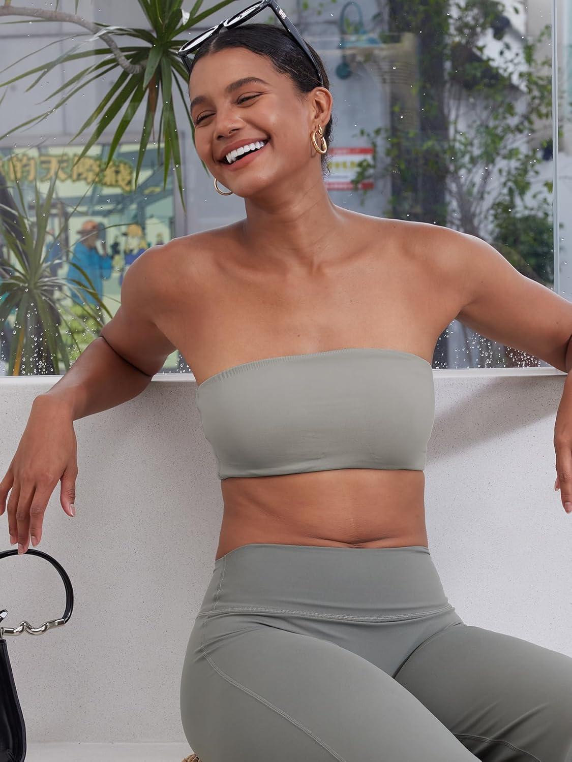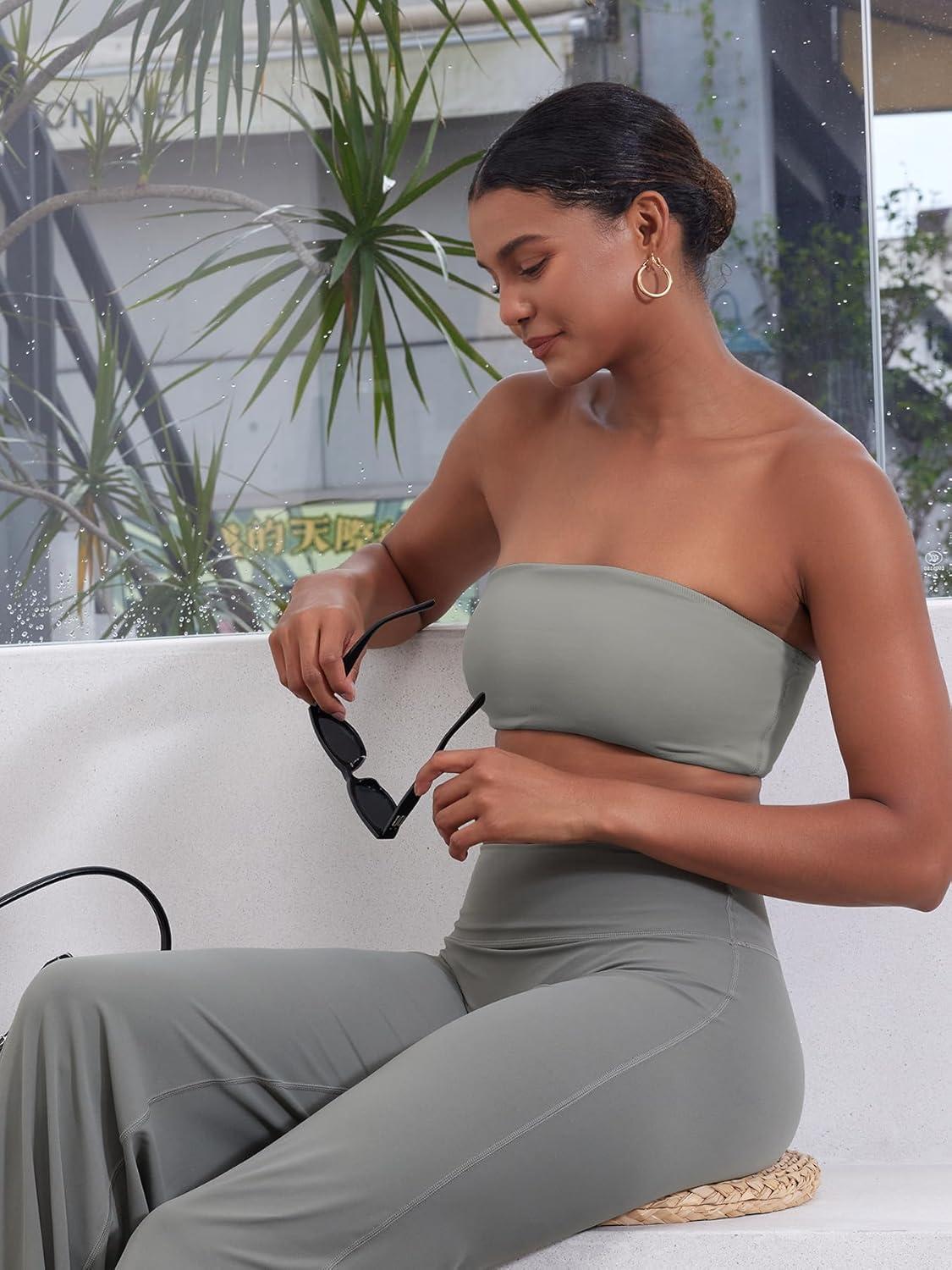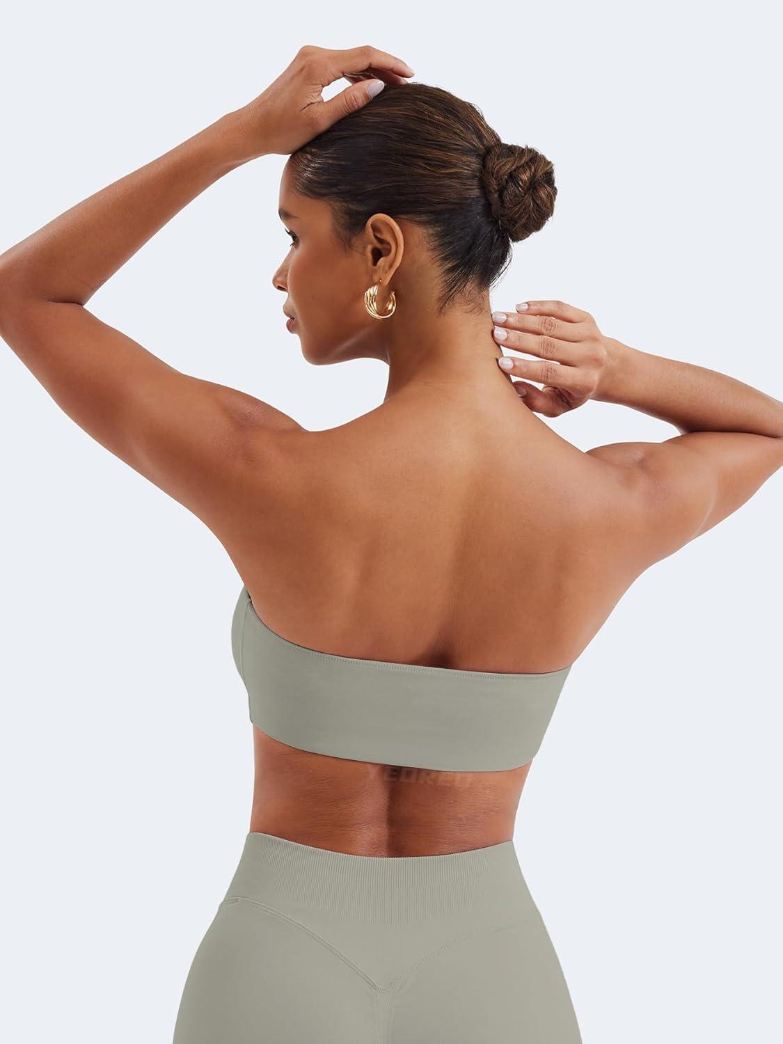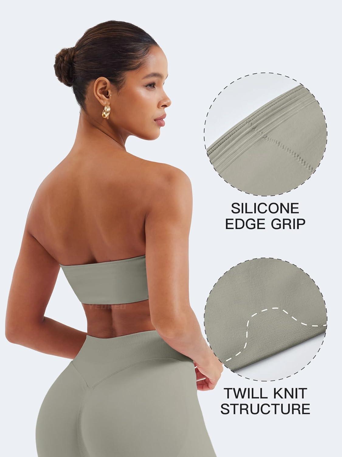imageYEOREO Strapless Bandeau Sports Bra for Workout Seamless Tube Top Gym Padded Wireless BraGrey