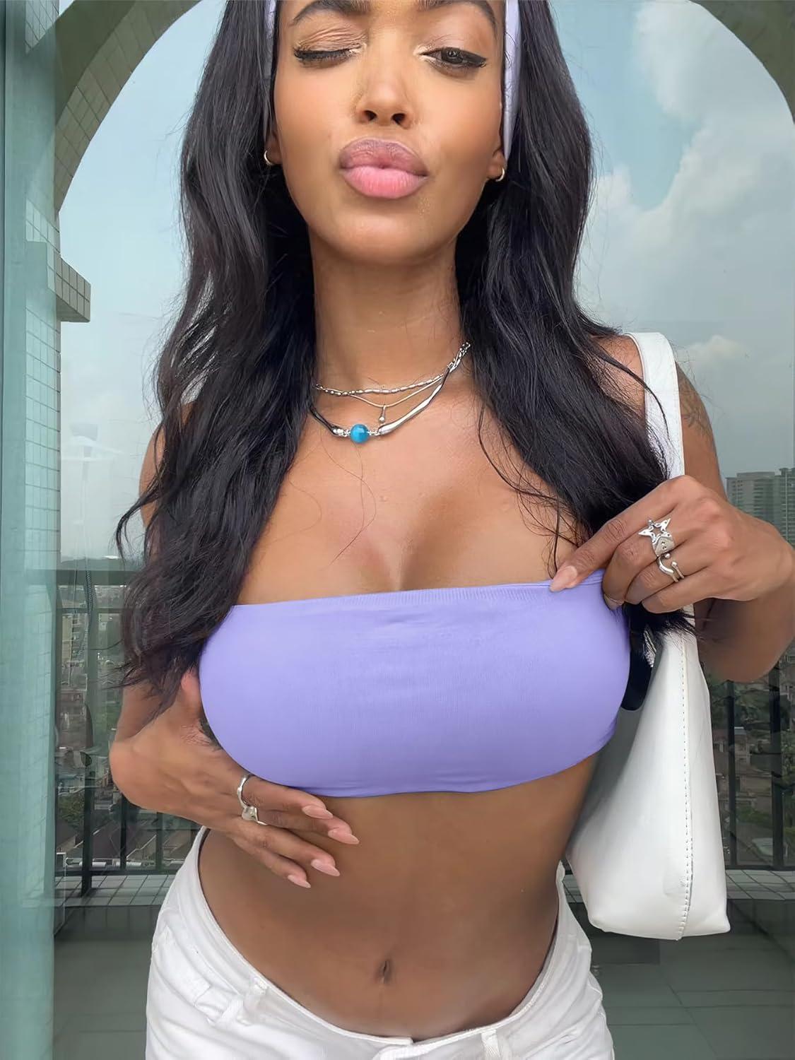 Be the first to review “YEOREO Strapless Bandeau Sports Bra for Workout Seamless Tube Top Gym Padded Wireless Bra(Purple)”