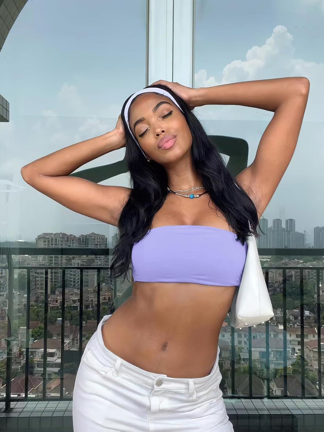 imageYEOREO Strapless Bandeau Sports Bra for Workout Seamless Tube Top Gym Padded Wireless BraPurple