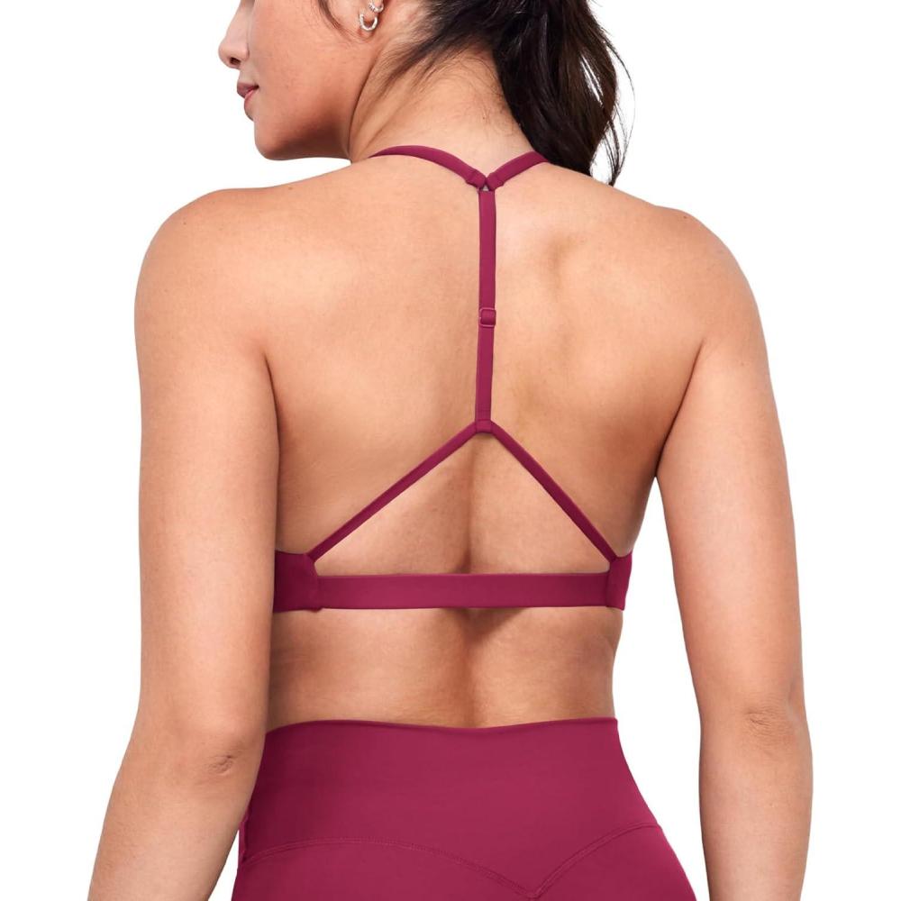 imageYEOREO TBack Strappy Workout Sports Bra Adjustable Gym Spaghetti Backless Yoga Bra for WomenDeep Berry