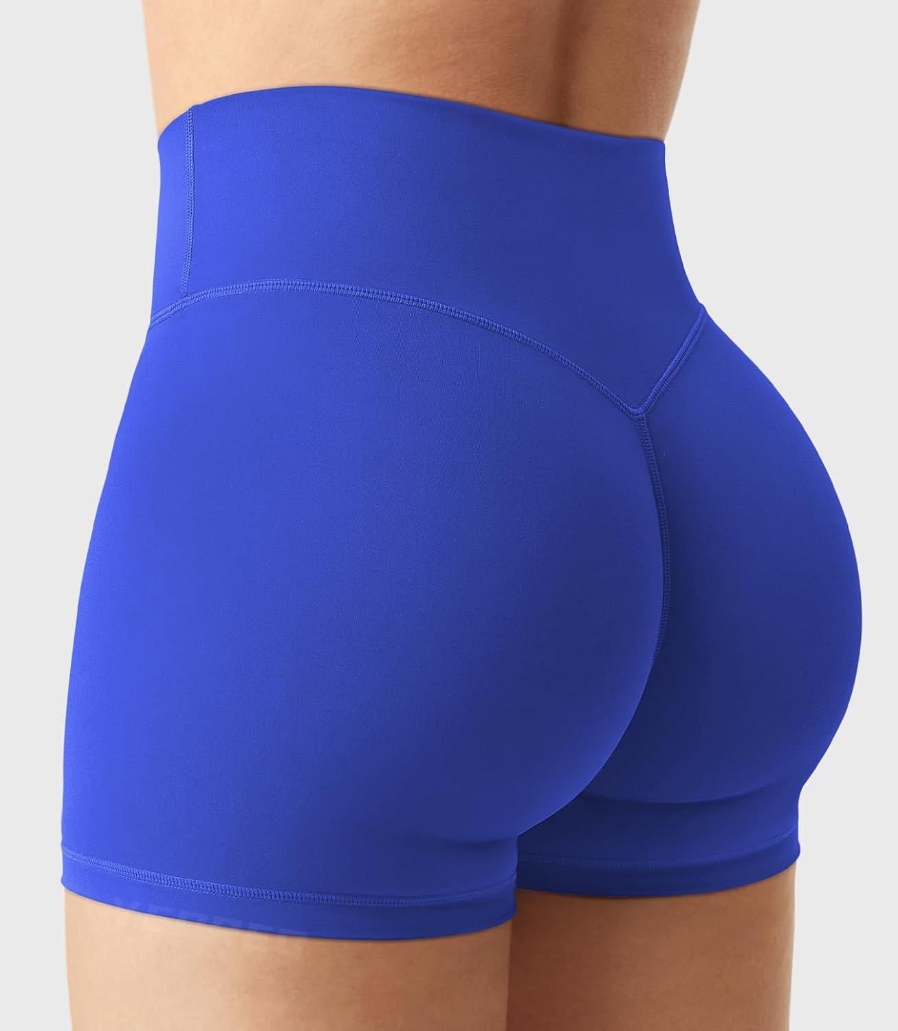 YEOREO Women's Biker Shorts 2.5" No Front Seam Elysina High Waist Hidden Scrunch Workout Gym Yoga Running Shorts(Blue)