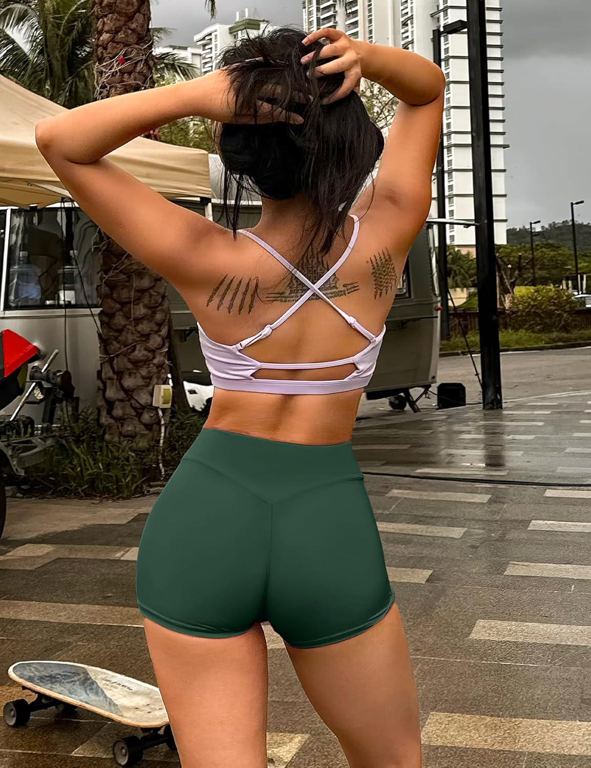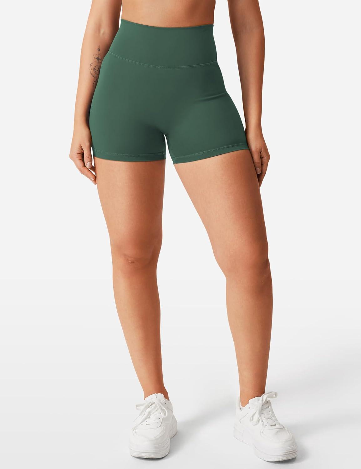YEOREO Women's Biker Shorts 3.6" /4.5" / 6" Workout Gym Shorts Craze High Waist Tummy Control Hidden Scrunch Running Yoga(Eden Green)