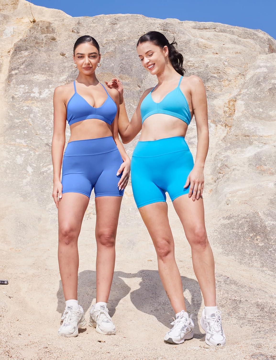 YEOREO Women’s Biker Shorts 3.6″ /4.5″ / 6″ Workout Gym Shorts Craze High Waist Tummy Control Hidden Scrunch Running Yoga(Marine Blue)