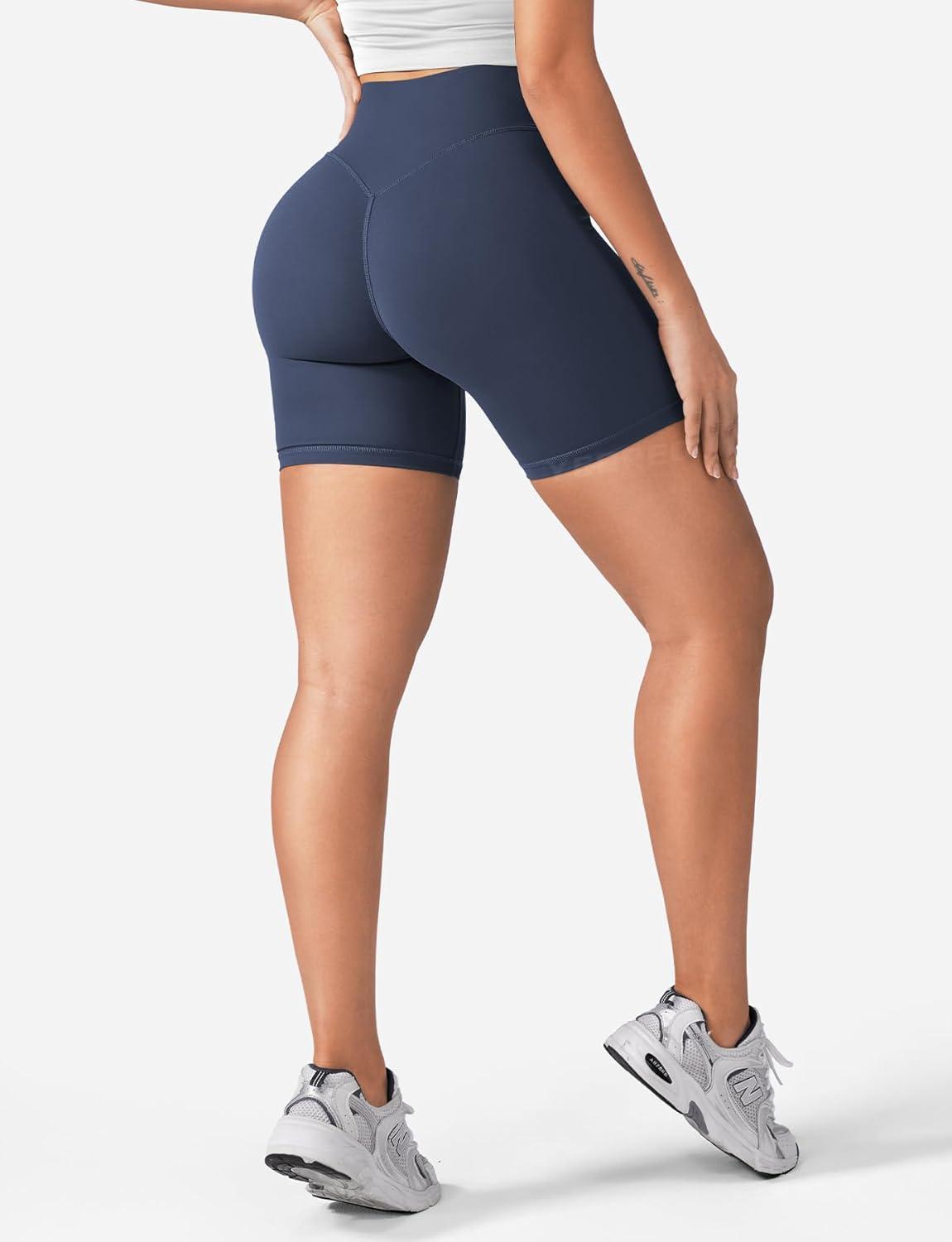 YEOREO Women's Biker Shorts 3.6" /4.5" / 6" Workout Gym Shorts Craze High Waist Tummy Control Hidden Scrunch Running Yoga(Navy Blue)