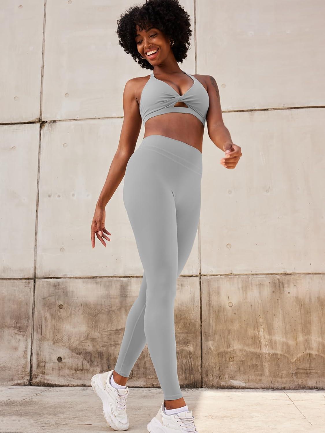 YEOREO Women’s Workout Gym Leggings Julissa Hidden Scrunch Butt Sculpting Compression Mid Rise V Back Yoga Leggings 26″(Light Grey)
