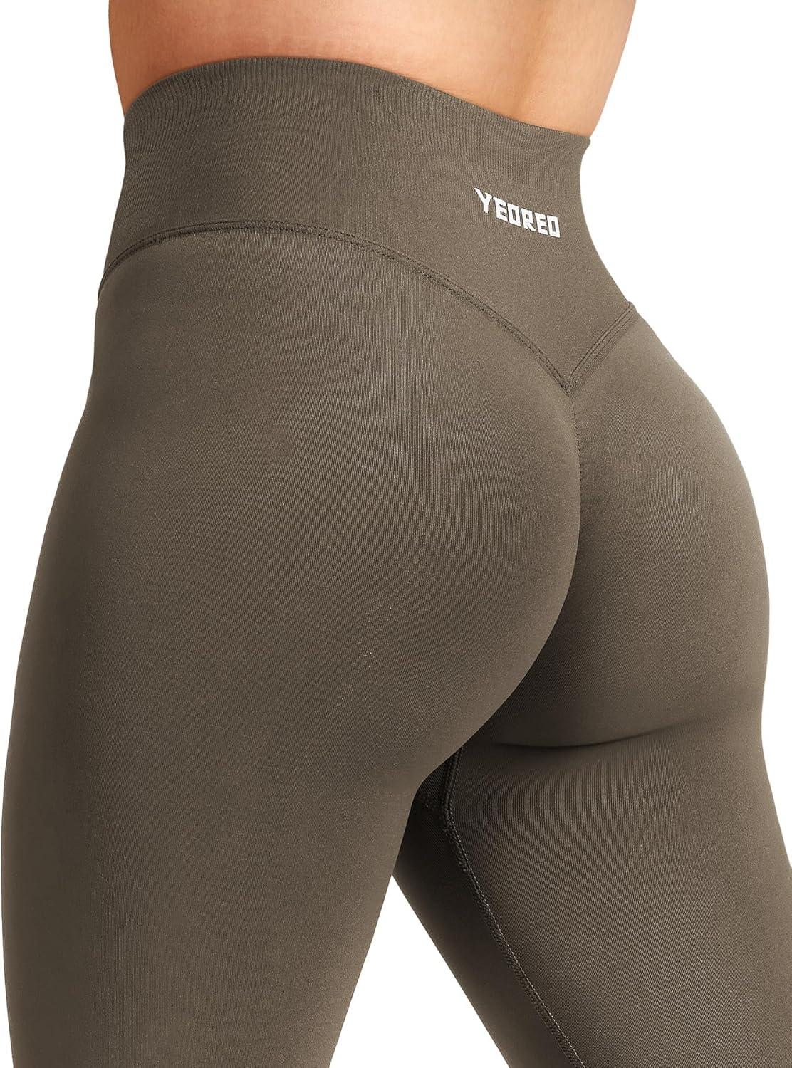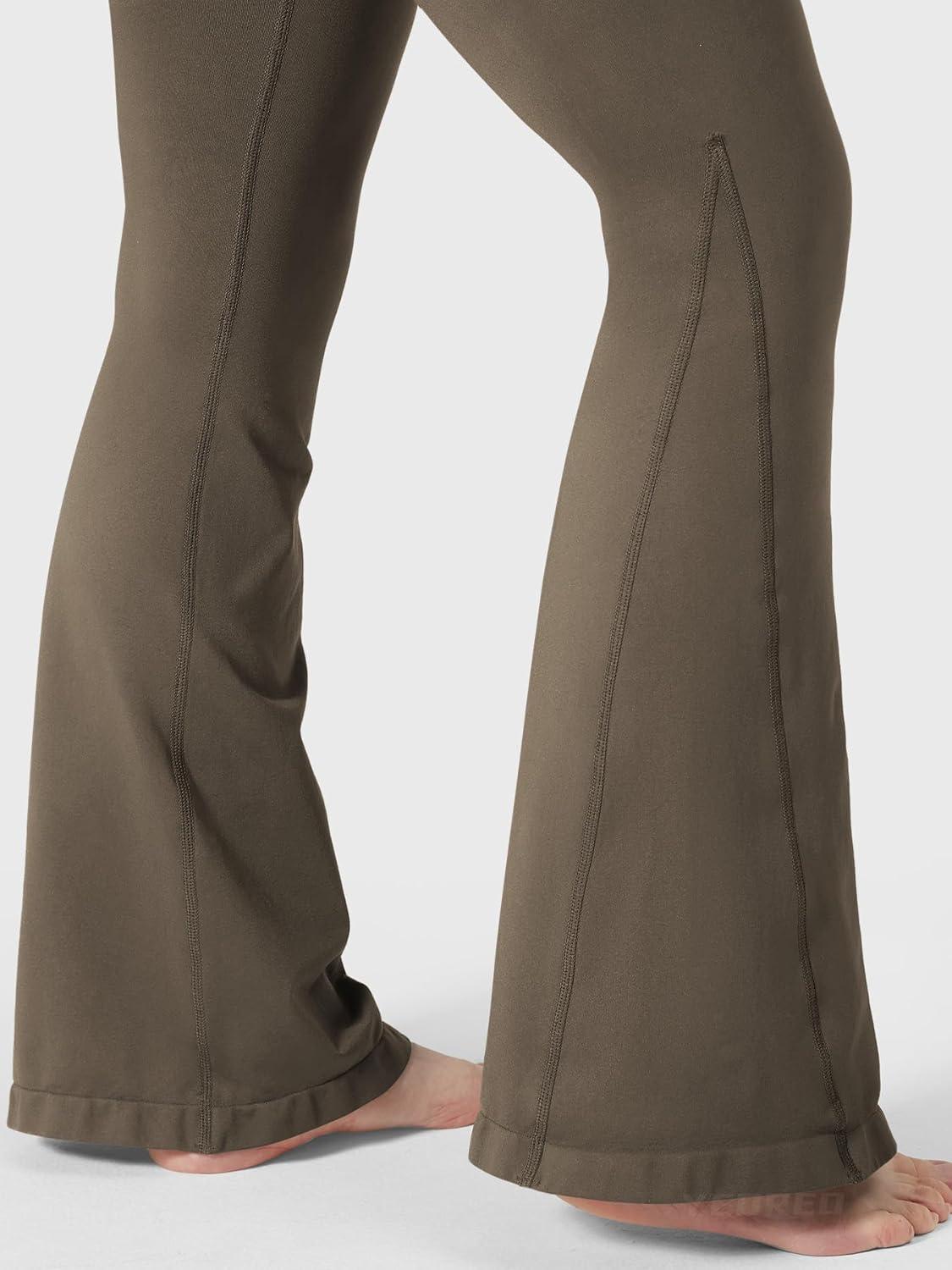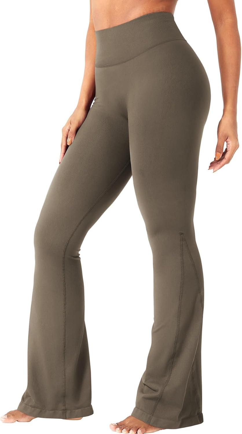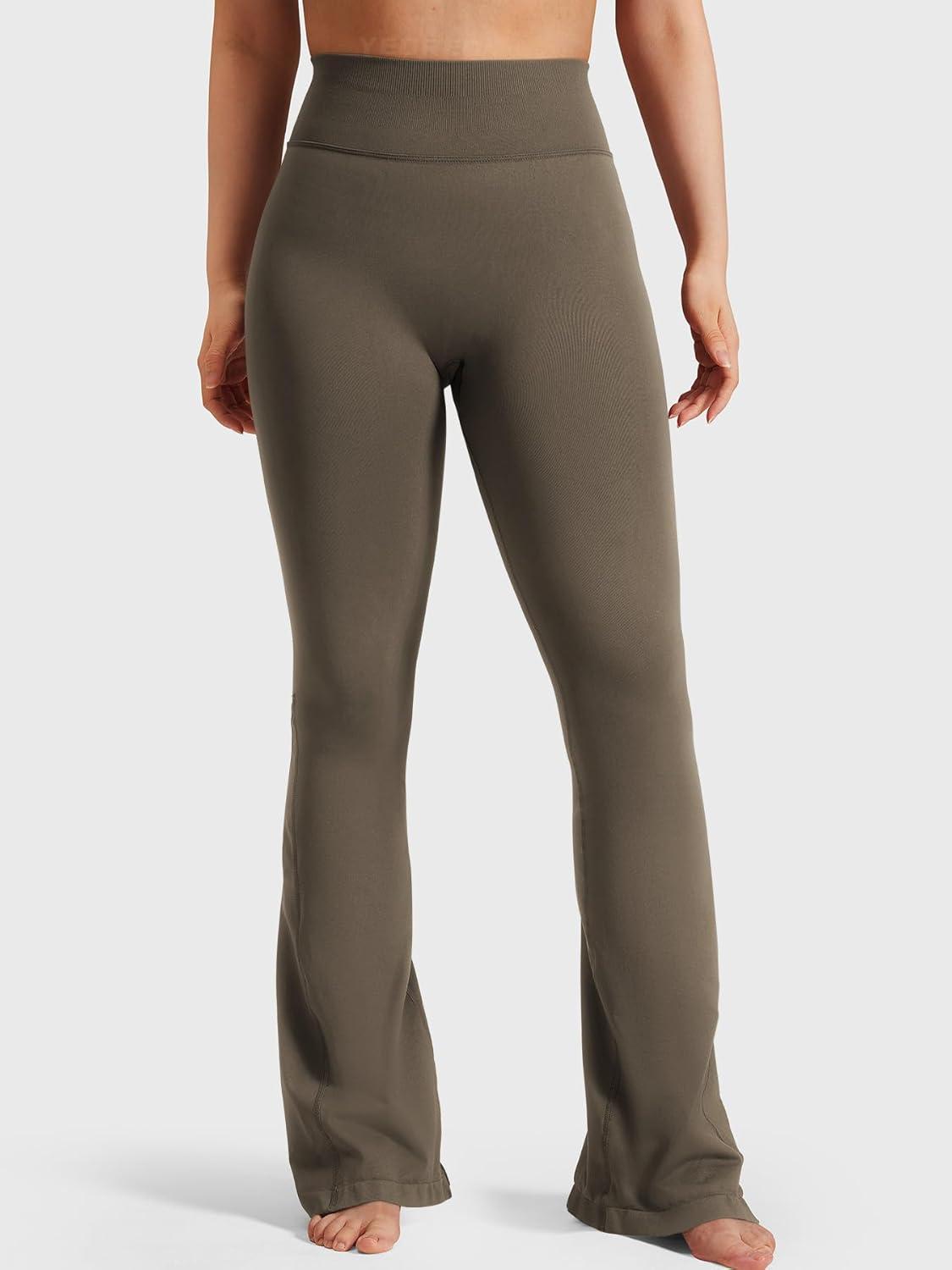 YEOREO Workout Mini Flare Leggings for Women Hidden Scrunch High Waisted Seamless Gym Leggings Brinklie 30″ Yoga Pants(Dark Brown)