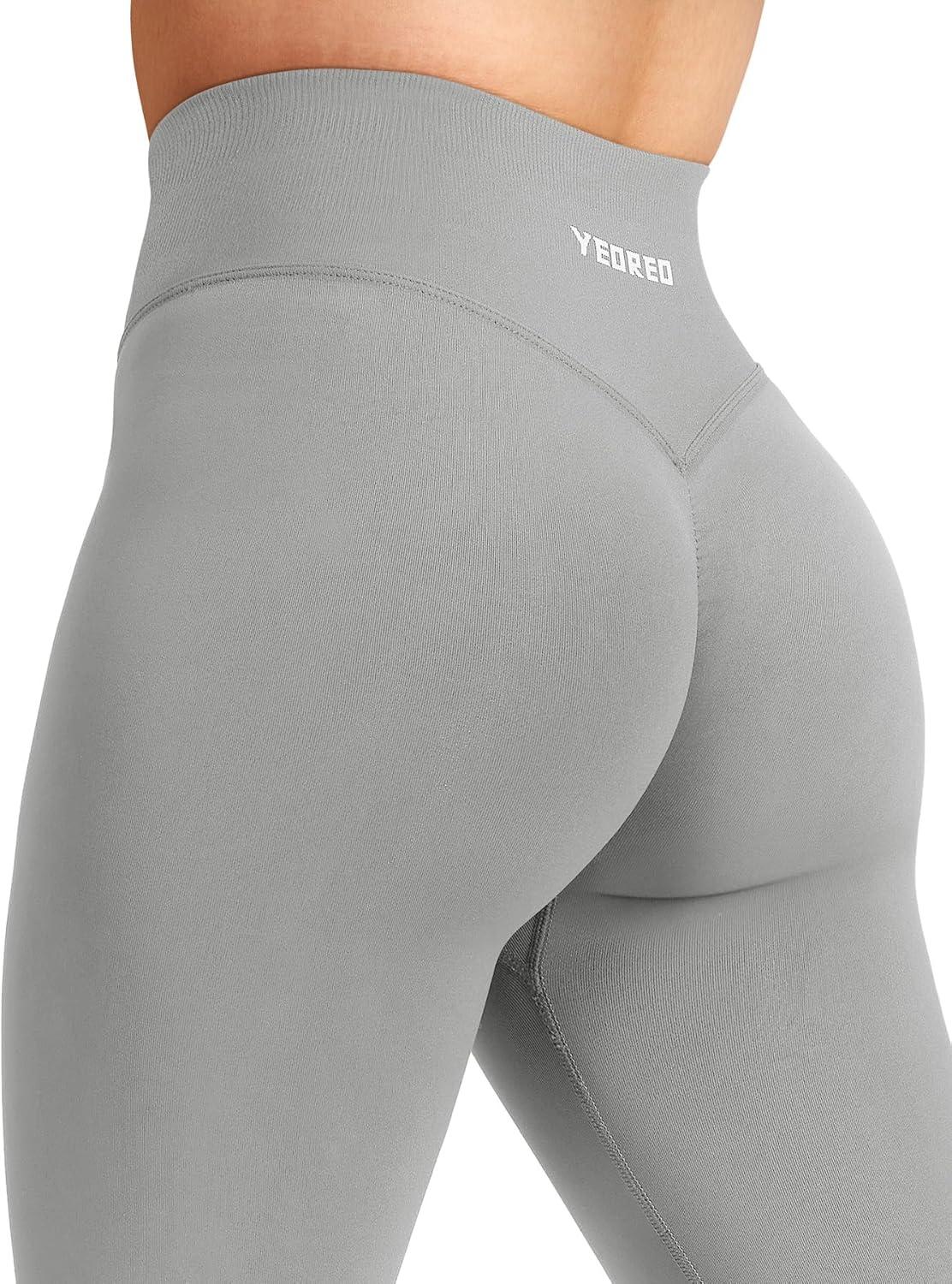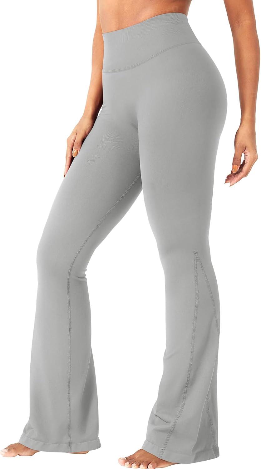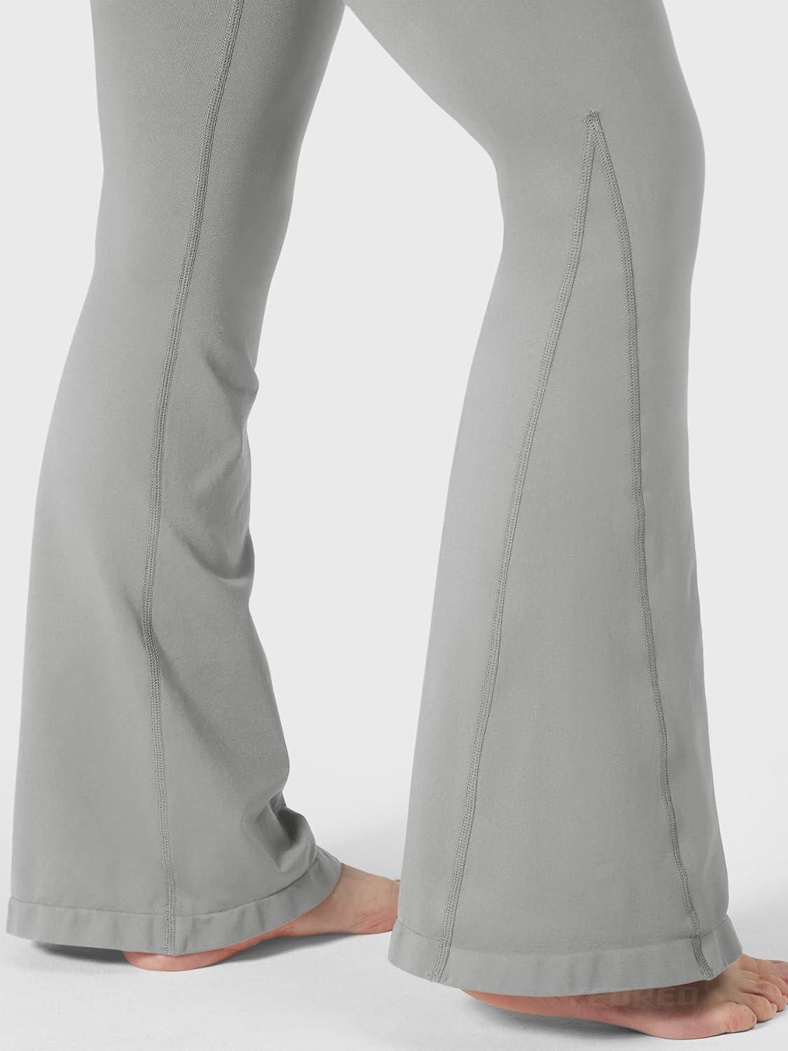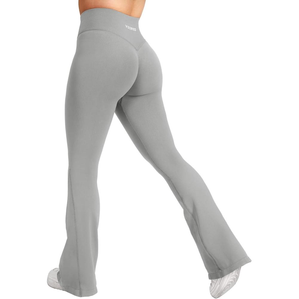 YEOREO Workout Mini Flare Leggings for Women Hidden Scrunch High Waisted Seamless Gym Leggings Brinklie 30″ Yoga Pants(Light Gray)